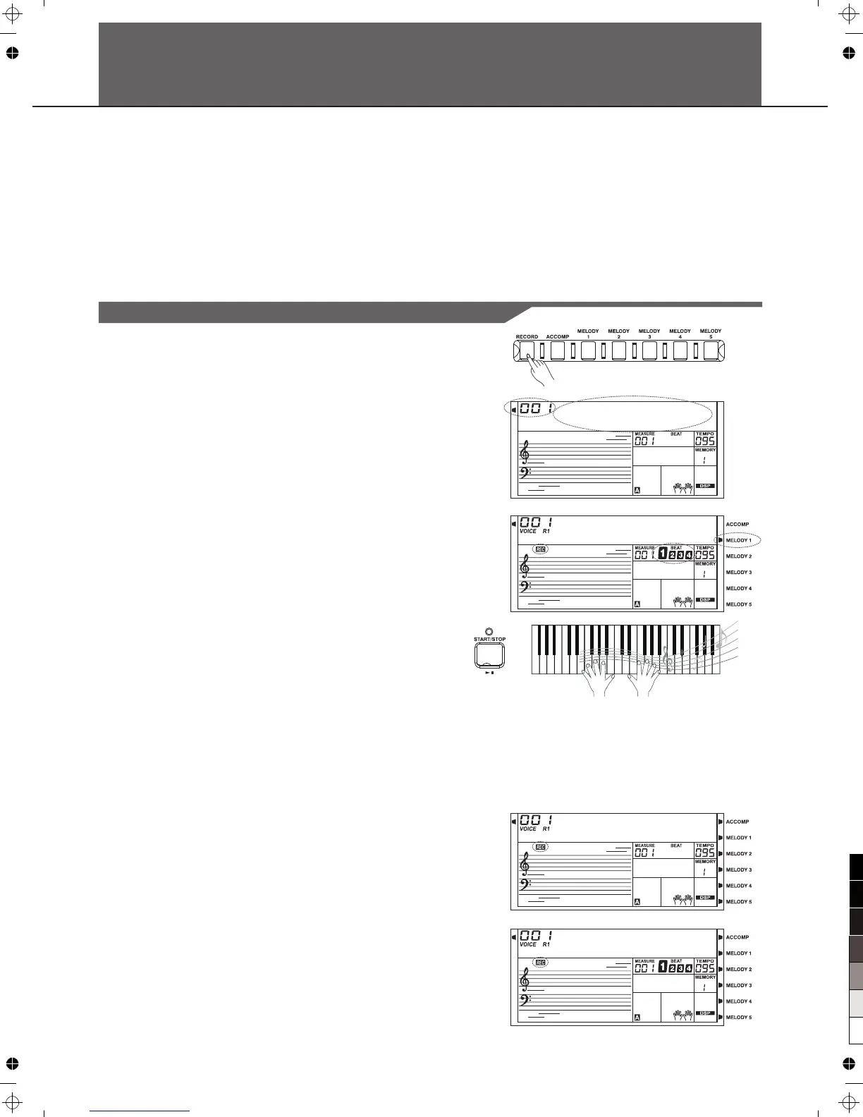 "Melody 1" as the recorded track. Press "Accomp" (or "Melody