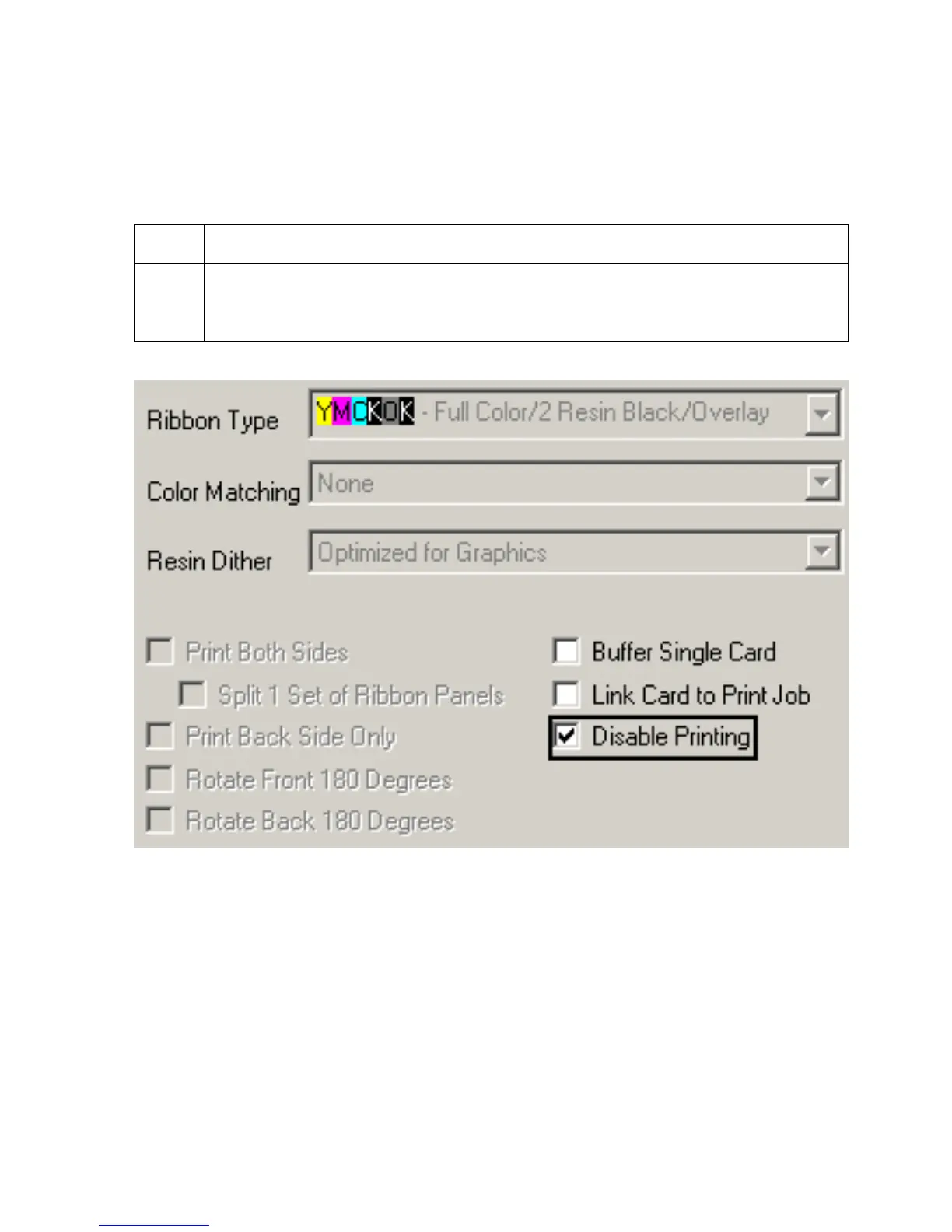 1 Select this option to ensure no print data will be sent to the Printer (while all