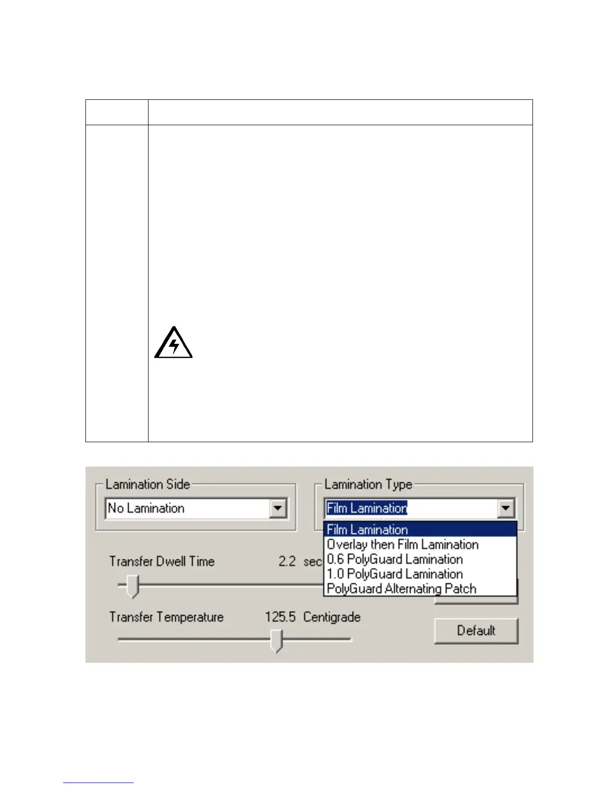 Selecting the Lamination Type