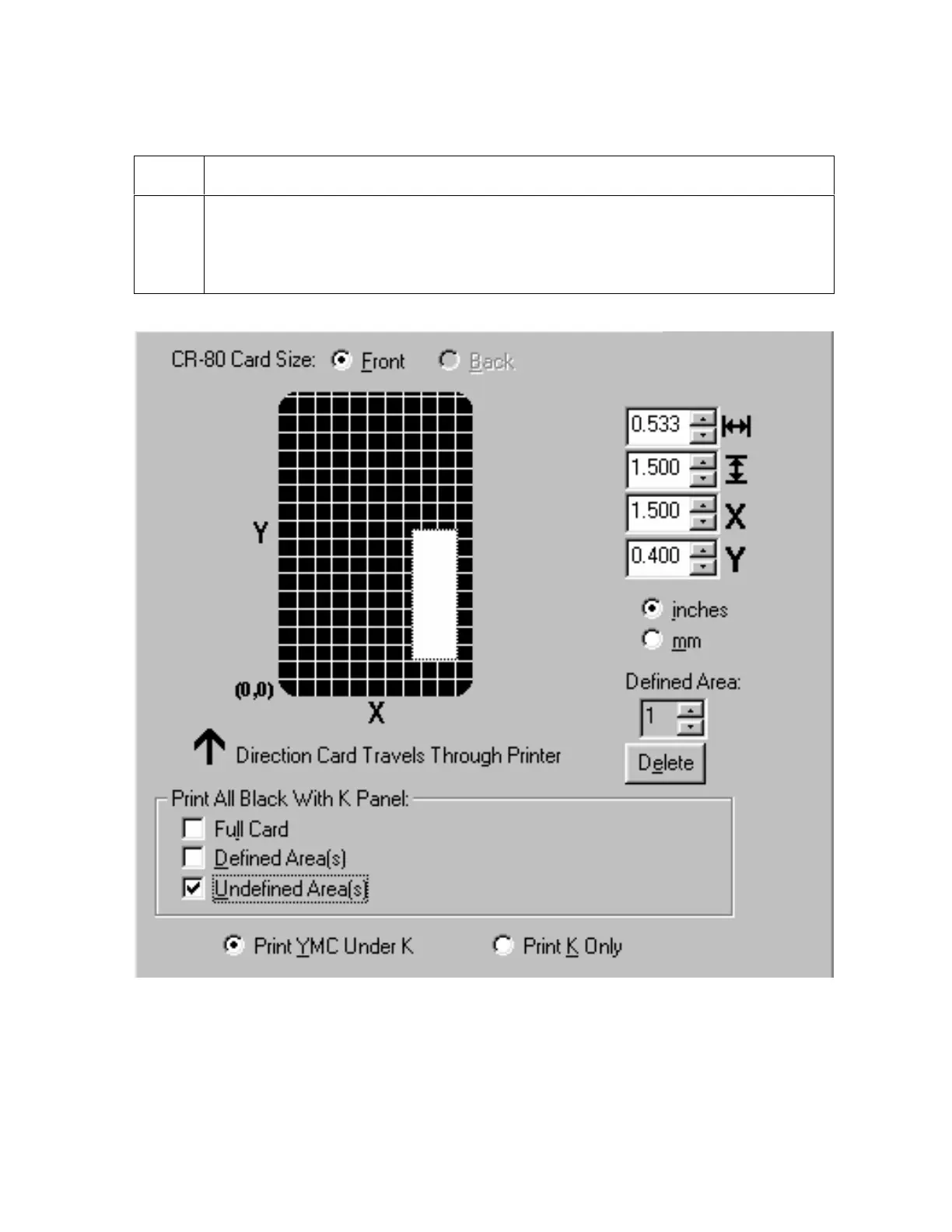 In the card grid, black indicates the area in which the resin black (K) panel will be