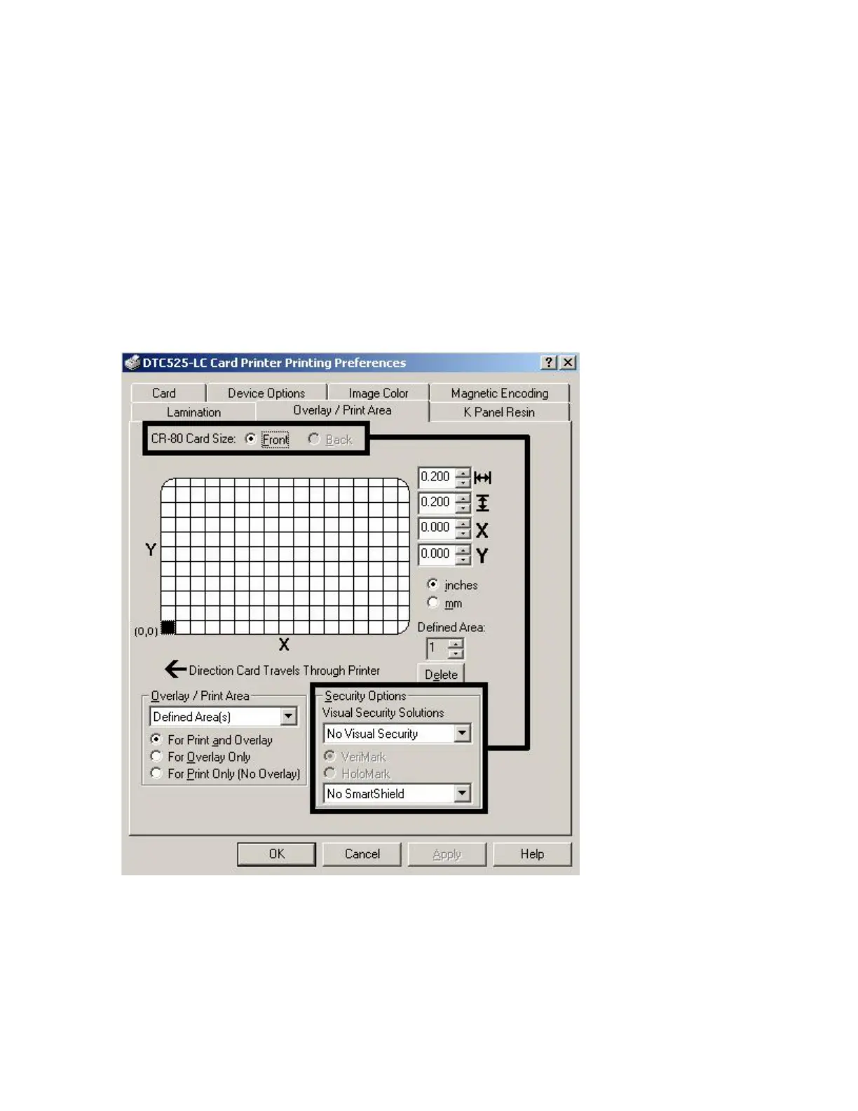 on the Front side (see below). Visual Security is not an option for the back side.