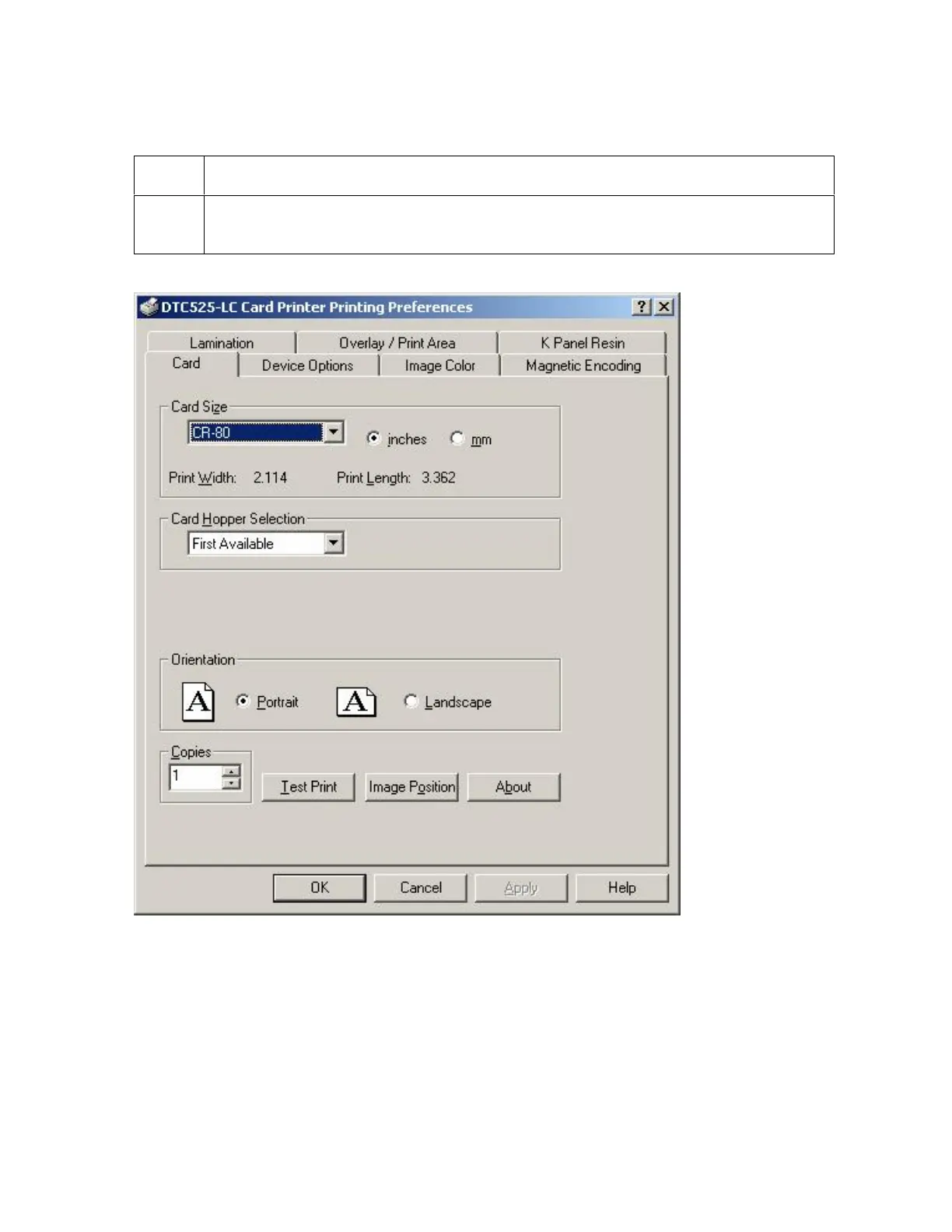 1 Select the Portrait radio button (below) under Orientation under the Card Size