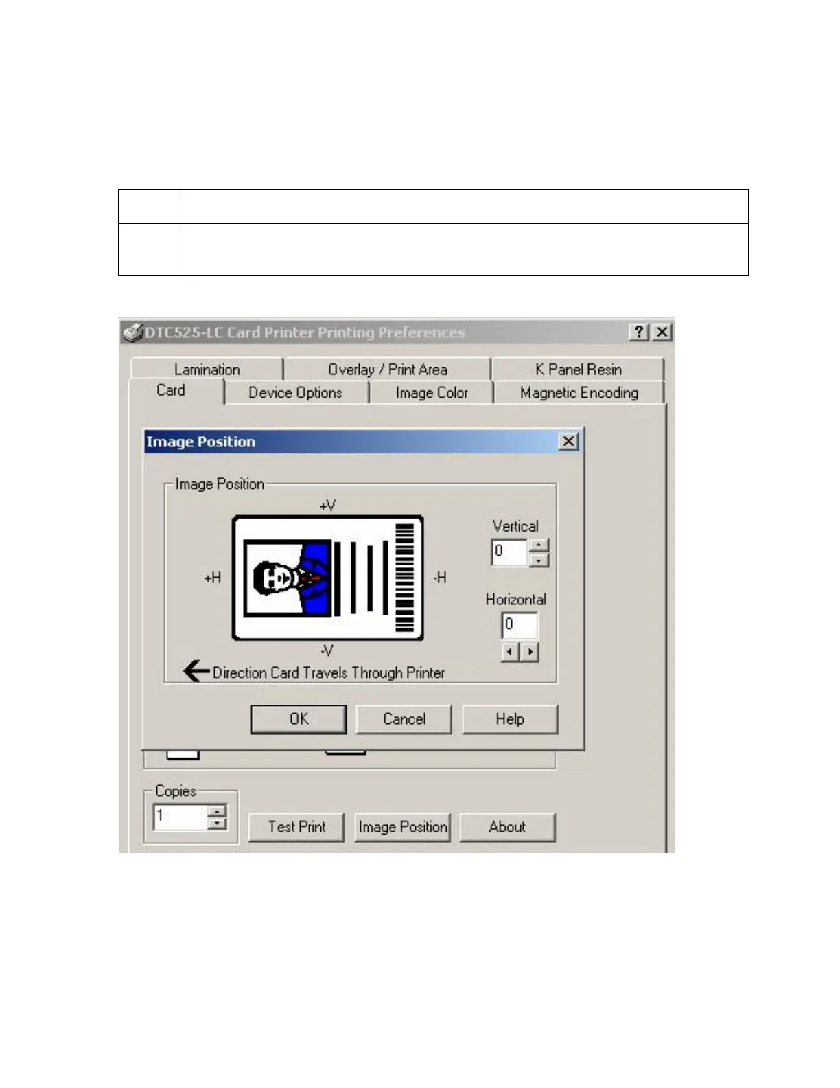 1 Adjust the Image Position values by clicking on the Vertical and Horizontal