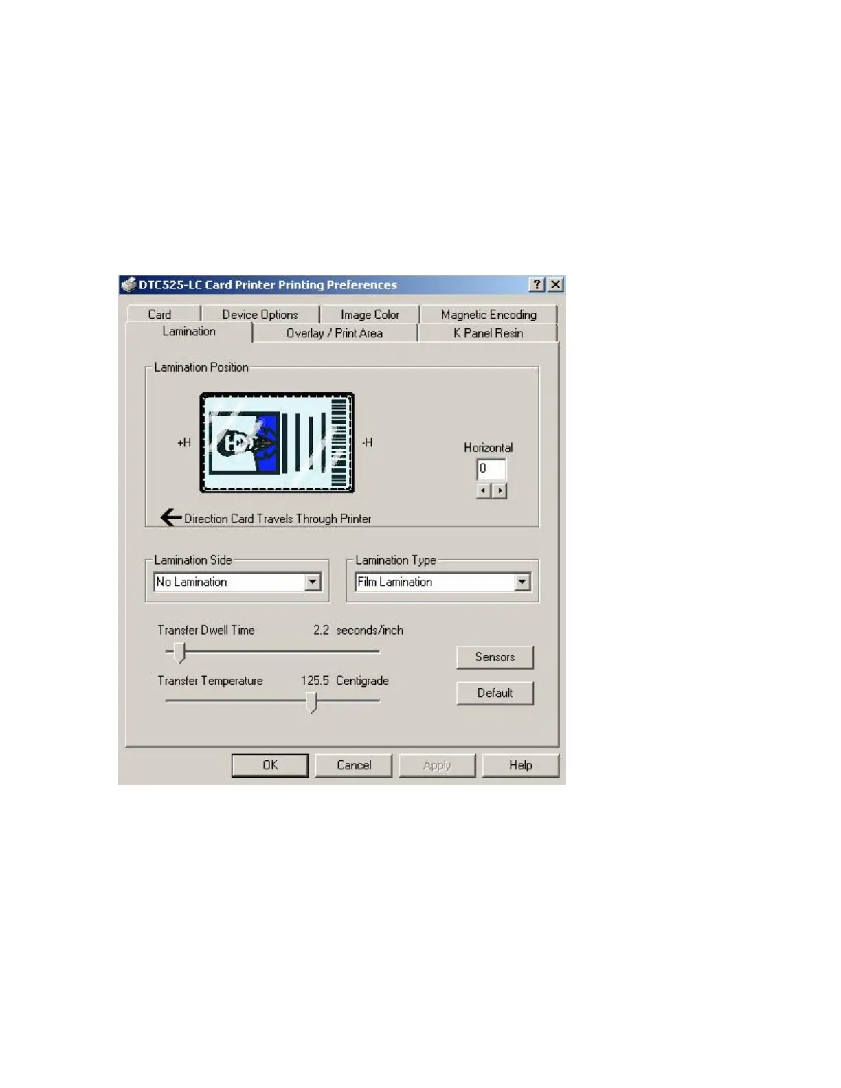 Printer is equipped with the Card Lamination Module. These options allow you to control the