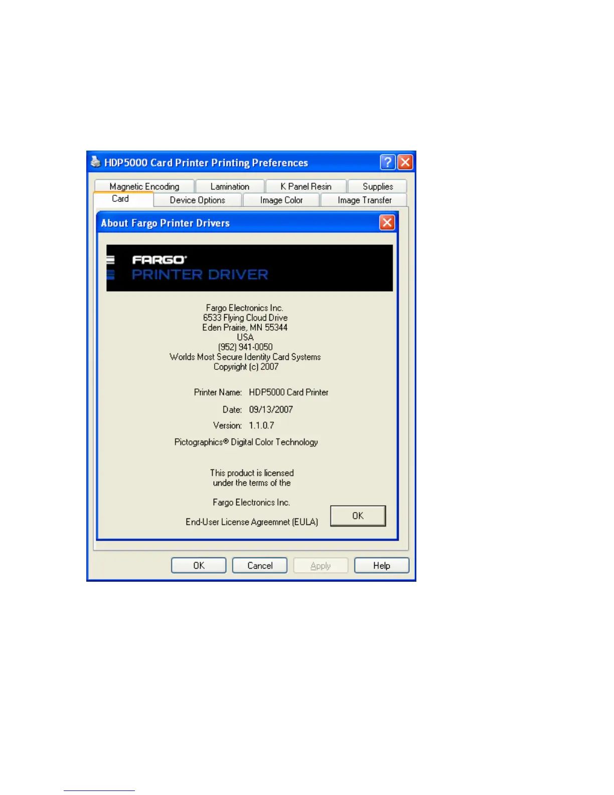 FARGO electronics HDP5000 single-side - Selecting the about Button