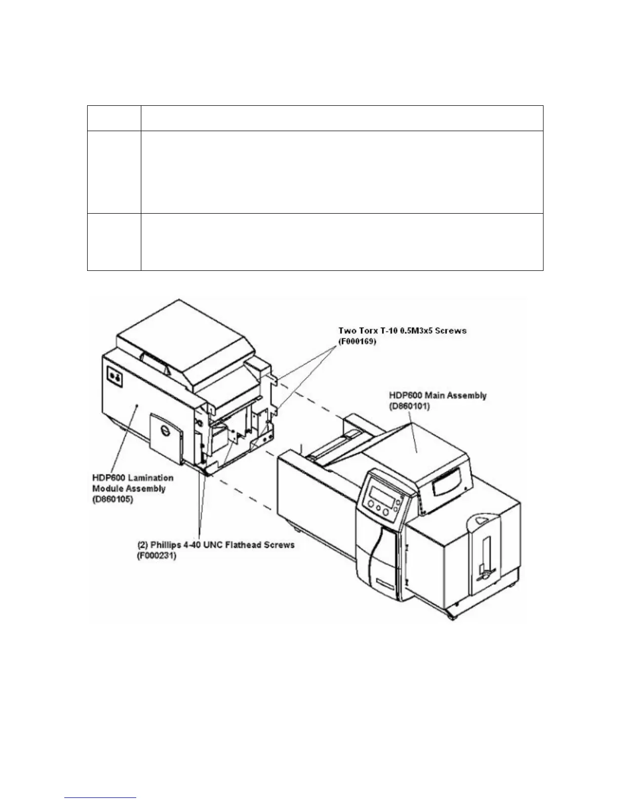 b. Fasten the Laminator Module (D860105) to the Printer (D860101) with the