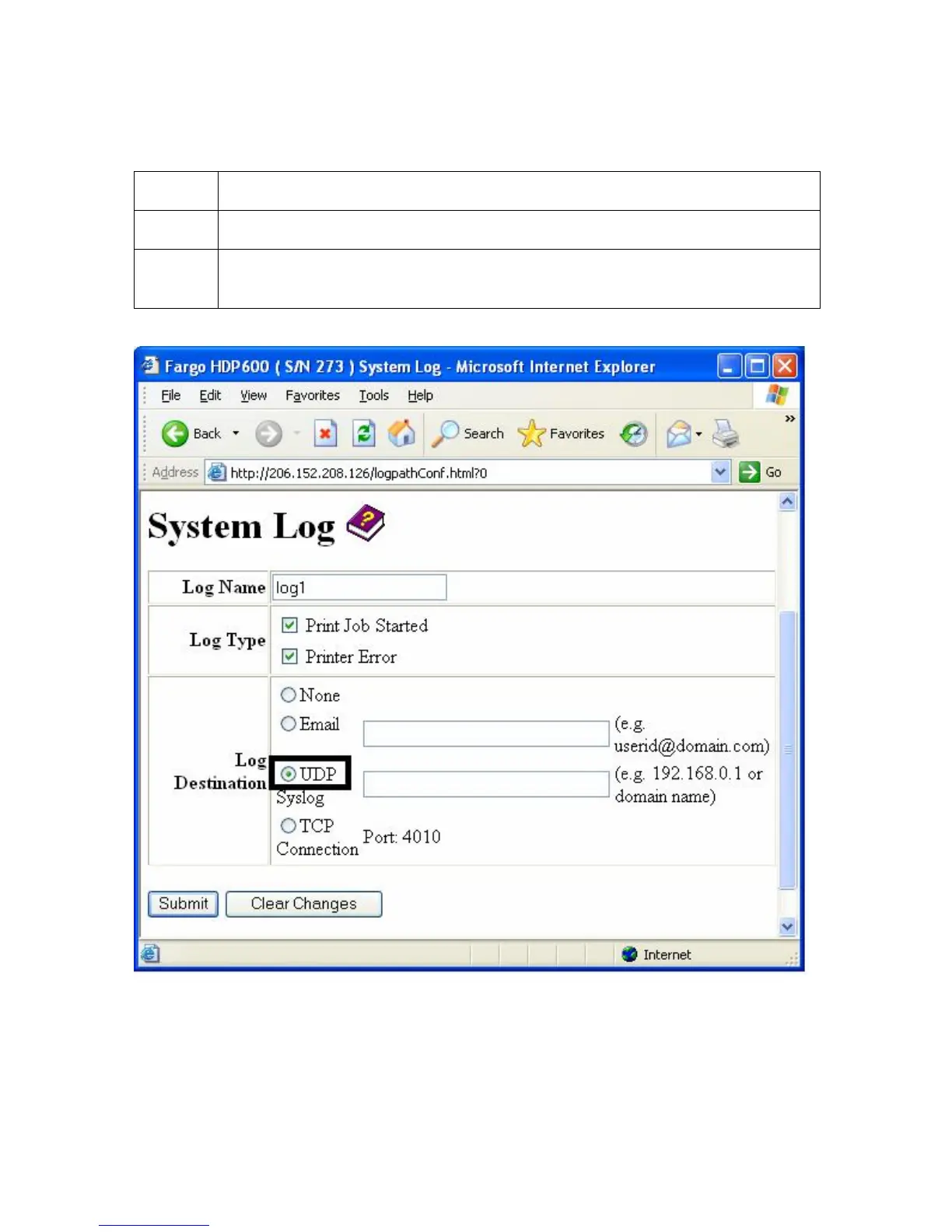 FARGO electronics HDP600 - Specifying UDP Event Logging (Continued)