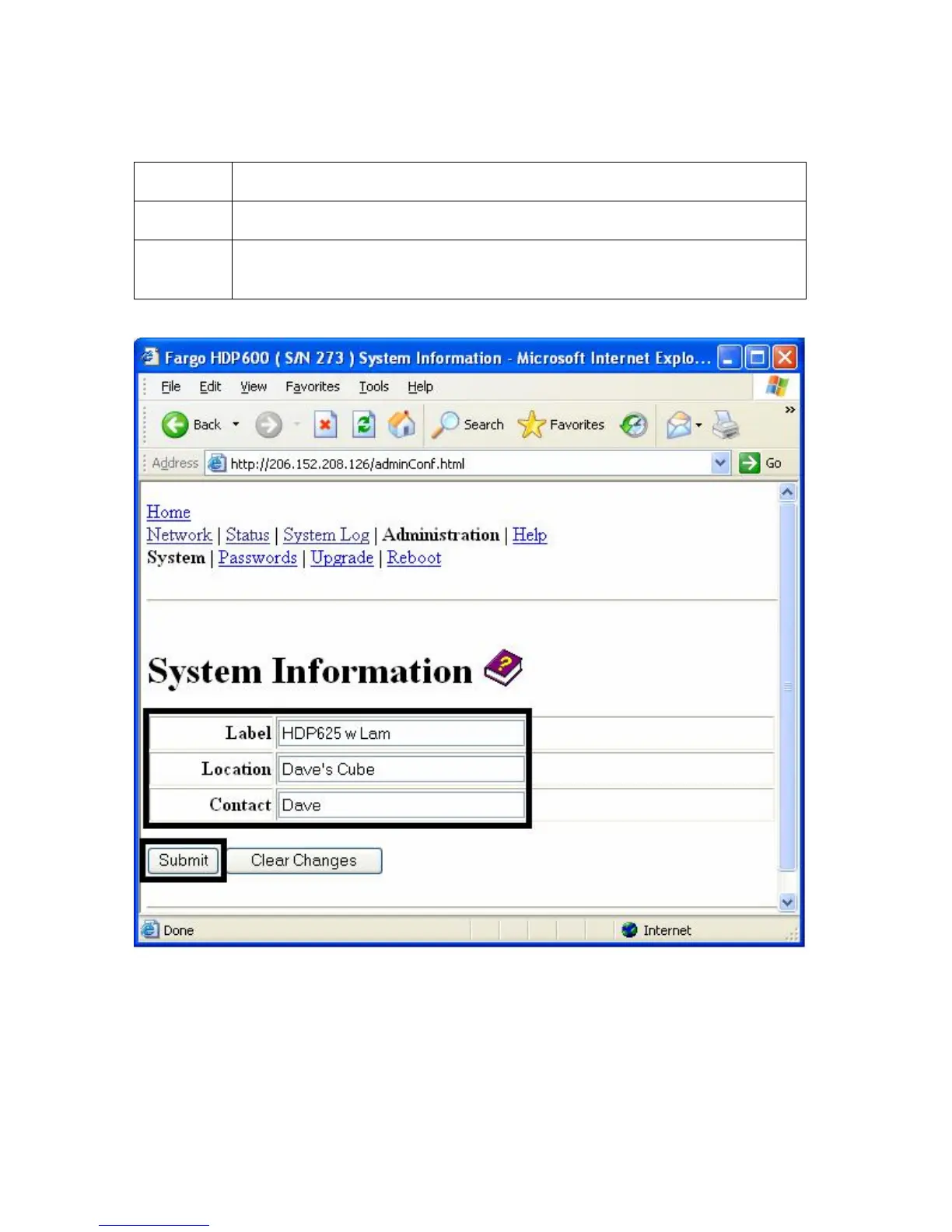 Using the System Information page (continued)