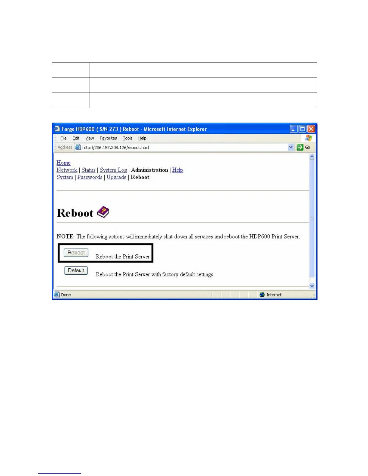 FARGO electronics HDP600 - Rebooting the Ethernet Server (Continued)