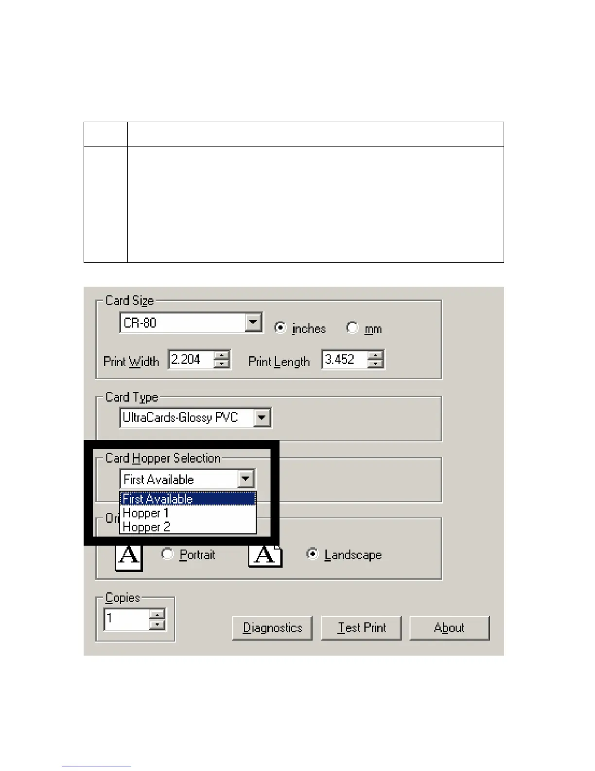 Selecting the Card Hopper (HDP600 and HDP600-LC only)