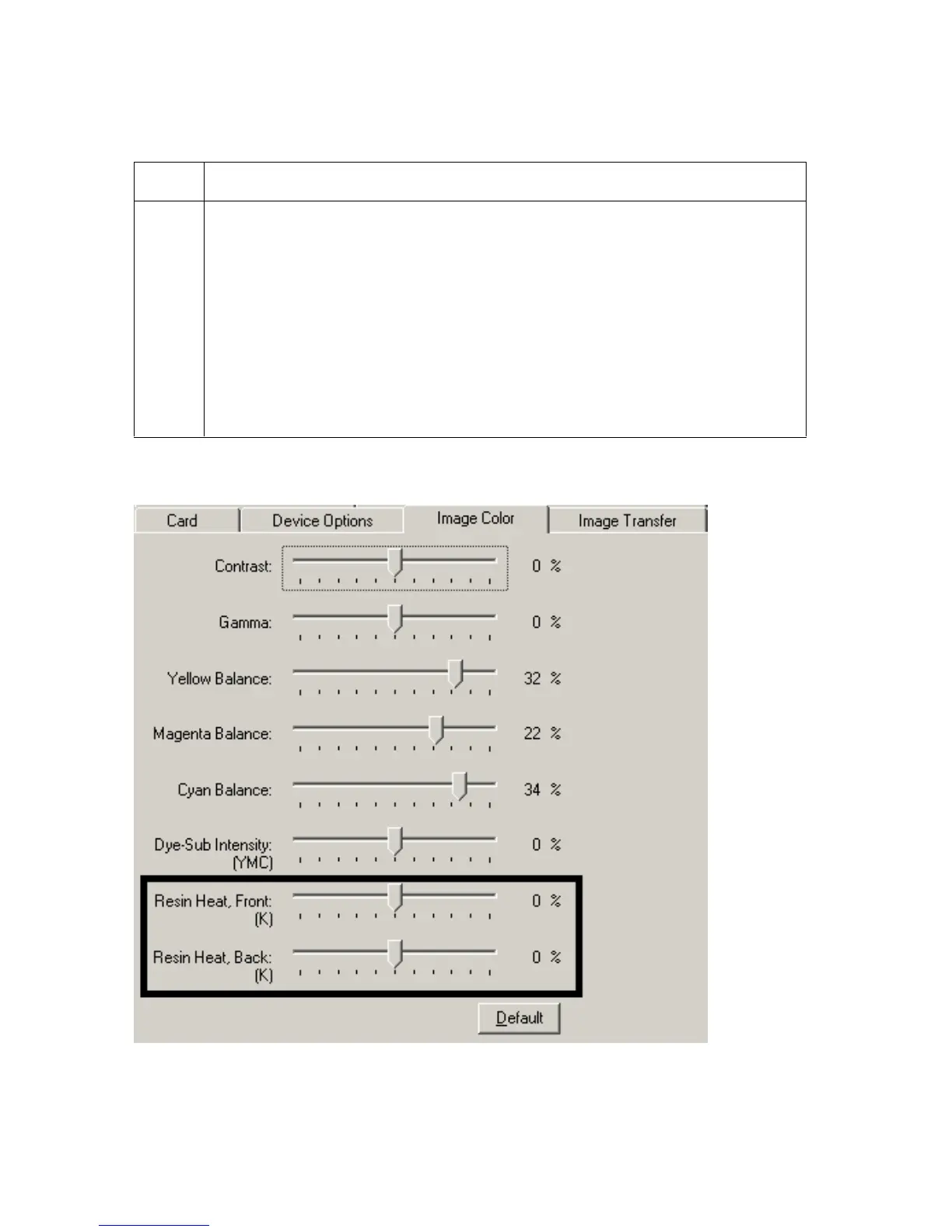 4 Control the amount of heat the Printer uses when printing with the resin black