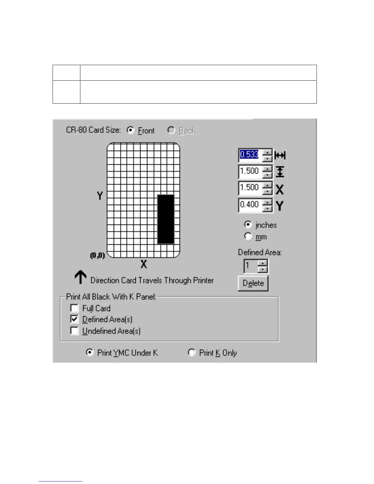 Select the Defined Area(s) option to print the resin black (K) Panel for all