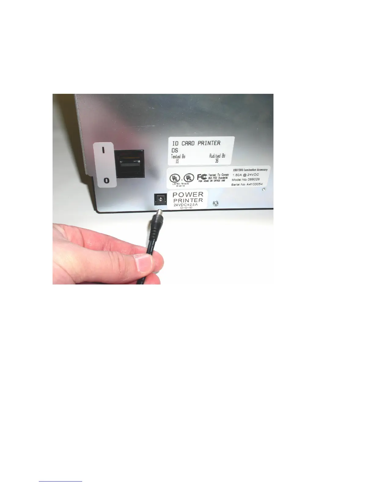 Display D - Connecting the plug from the power supply to the Printer as shown below. (Note:
