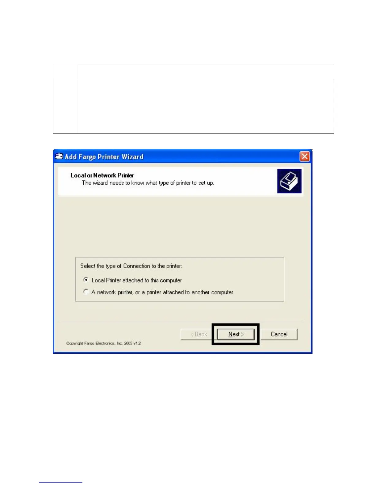 Select Local Printer attached to this Computer if using the Printer via USB,