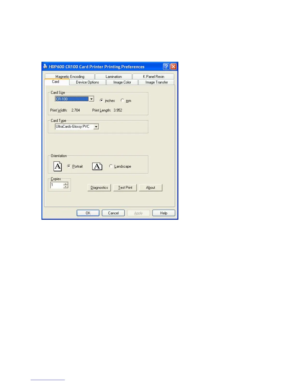 Display A - HDP600 Printer Driver Card Tab: