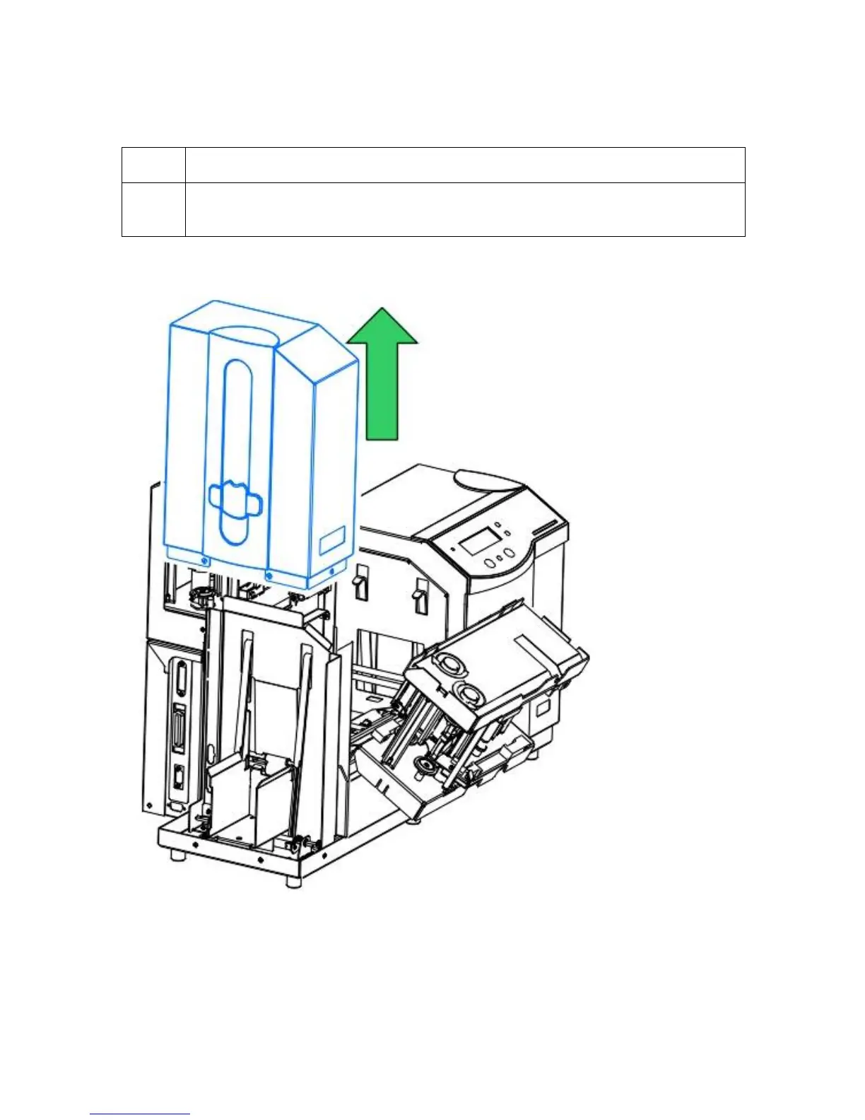 6 Remove the Card Output Hopper's main enclosure by lifting it up and off of the