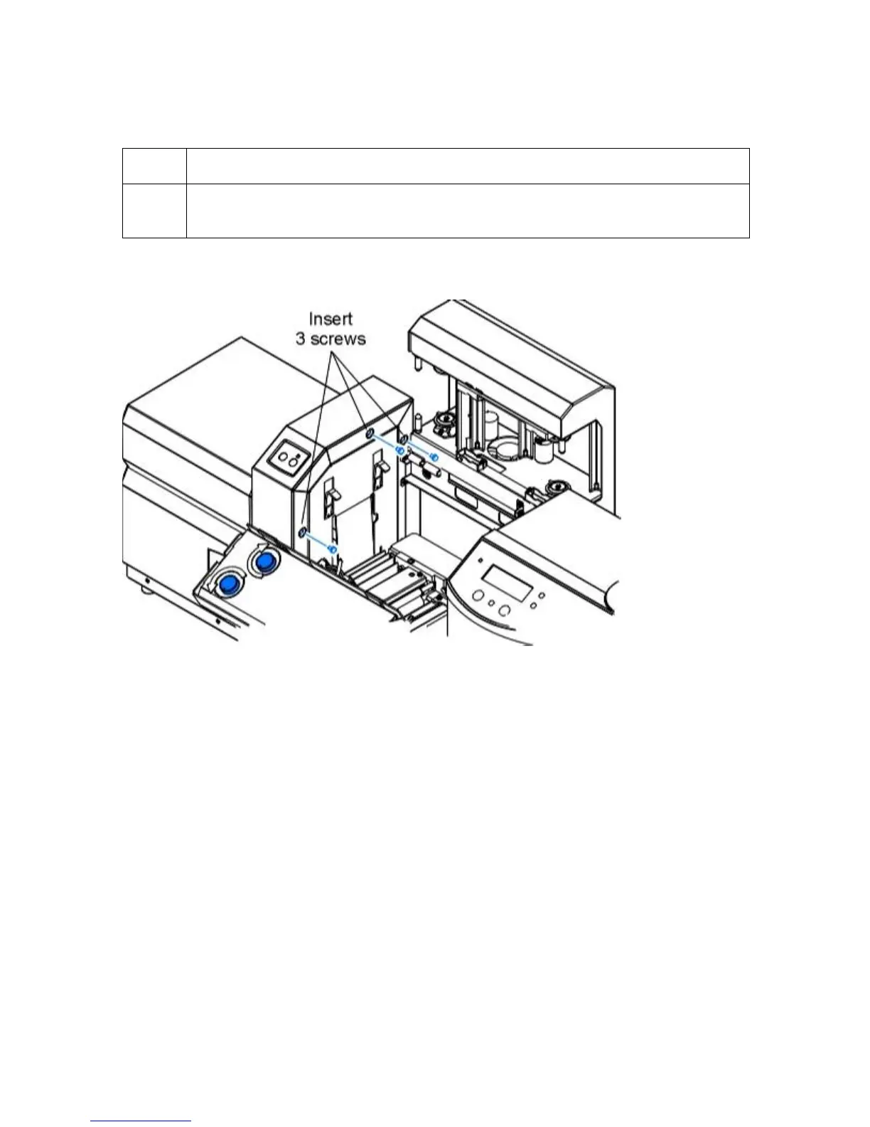14 Insert three (3) screws into the top of the Card Lamination Module, shown