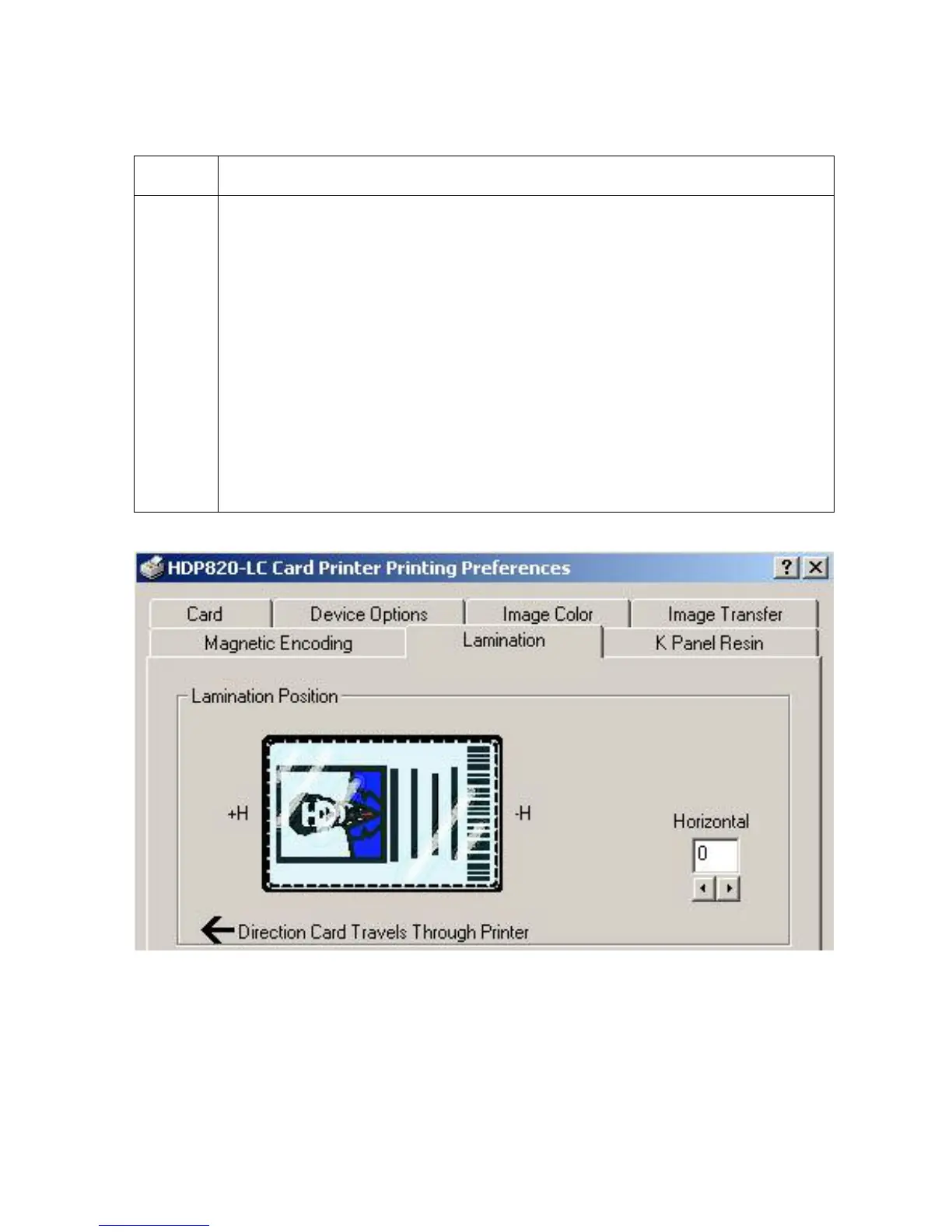 1 The Lamination Position control allows you to adjust the horizontal position of