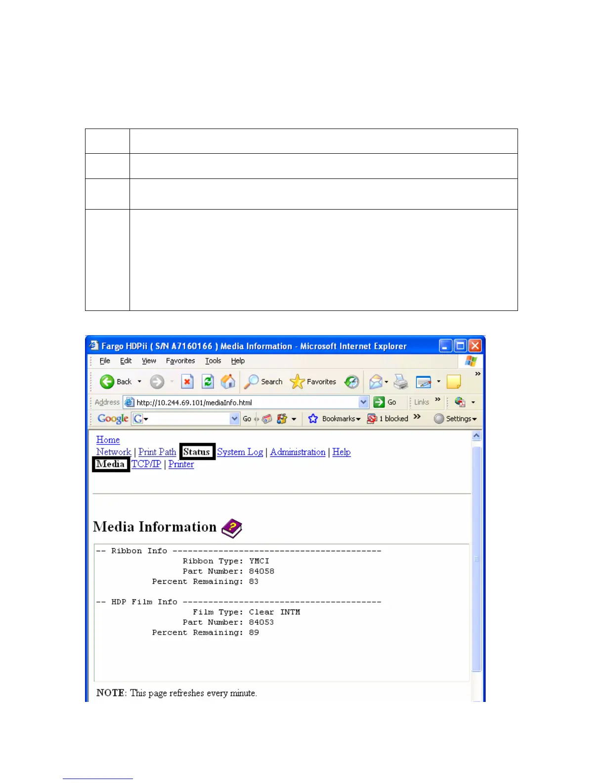 This page displays Media information about the Ribbon and Film (currently installed in the