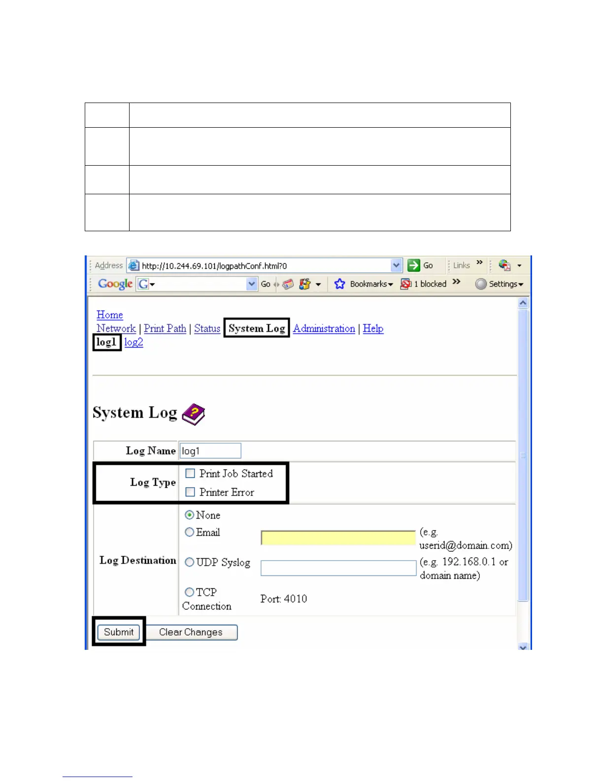 4 Select the Printer Error checkbox to generate the log entries for each Printer