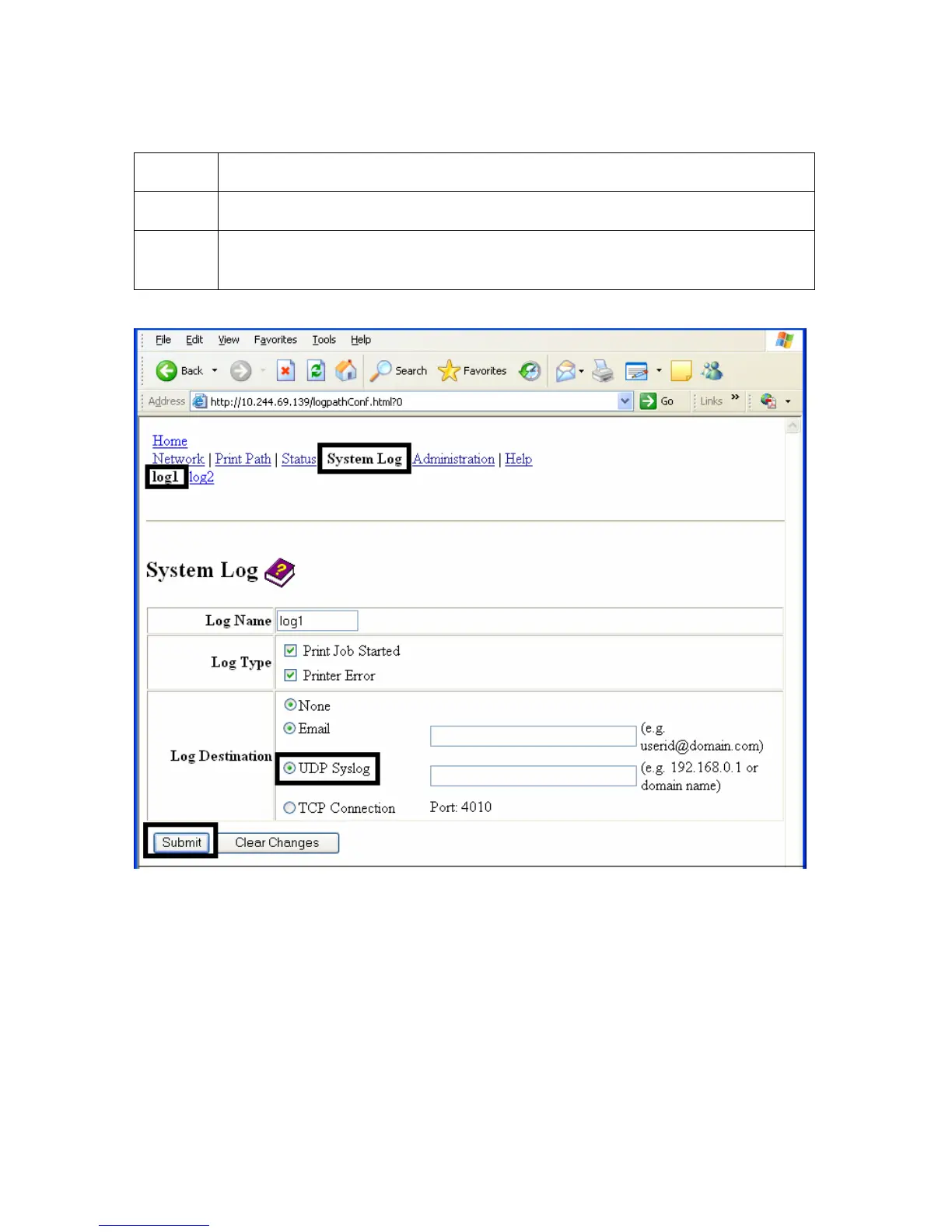 Specifying UDP Event logging
