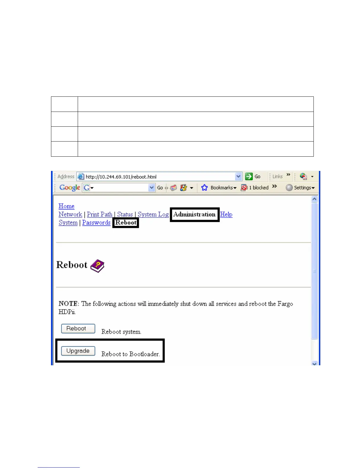 Printer/encoder, this Upgrade page provides for upgrading the main Printer Firmware which
