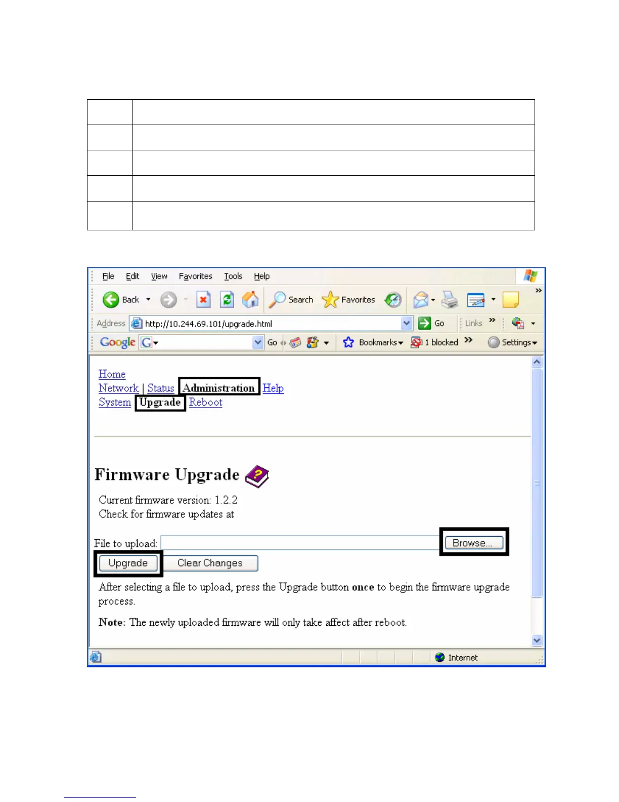 10 Select the Upgrade button to start the Firmware upload. See Display A below.