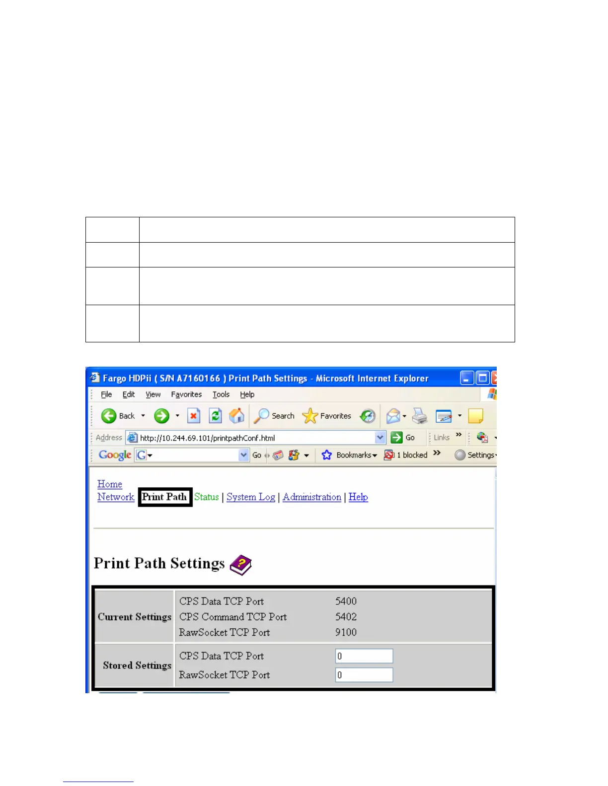 The purpose of the Print Path page is to allow the User to view or change the TCP port