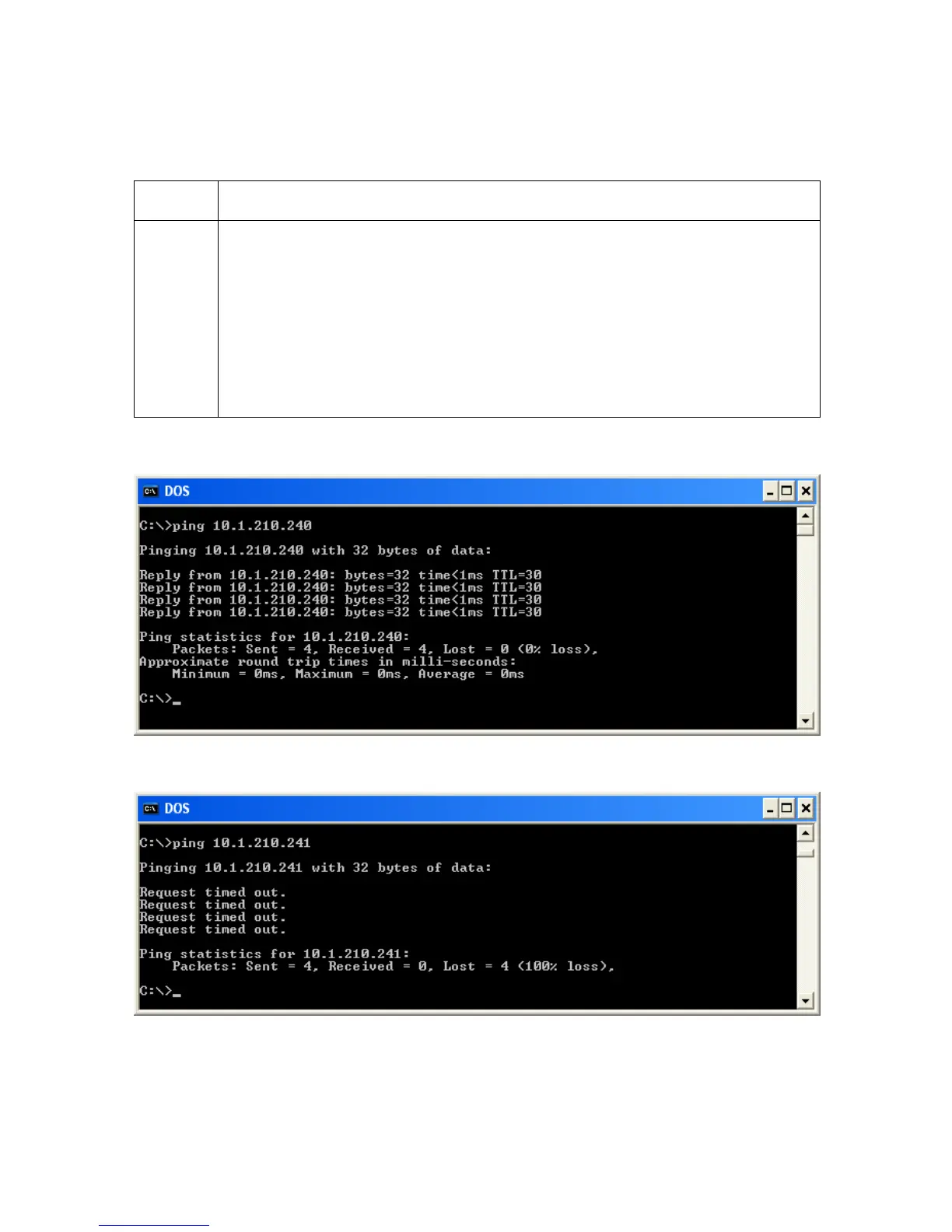 Example: C:\>ping 210.1.10.240