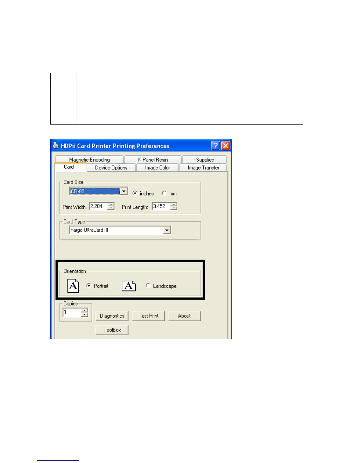 1 Select Portrait to cause the card to print in a vertical orientation.