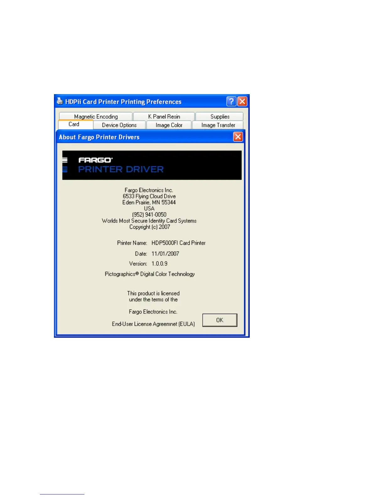 FARGO electronics HDPii - Selecting the about Button