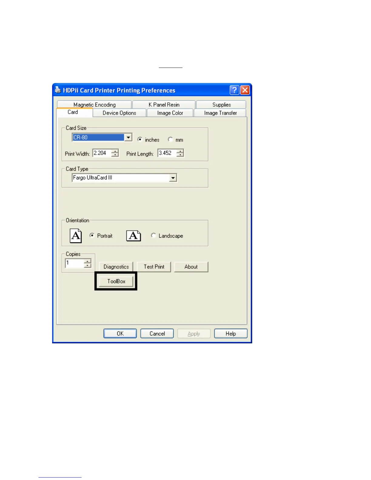 FARGO electronics HDPii - Selecting the Toolbox Button