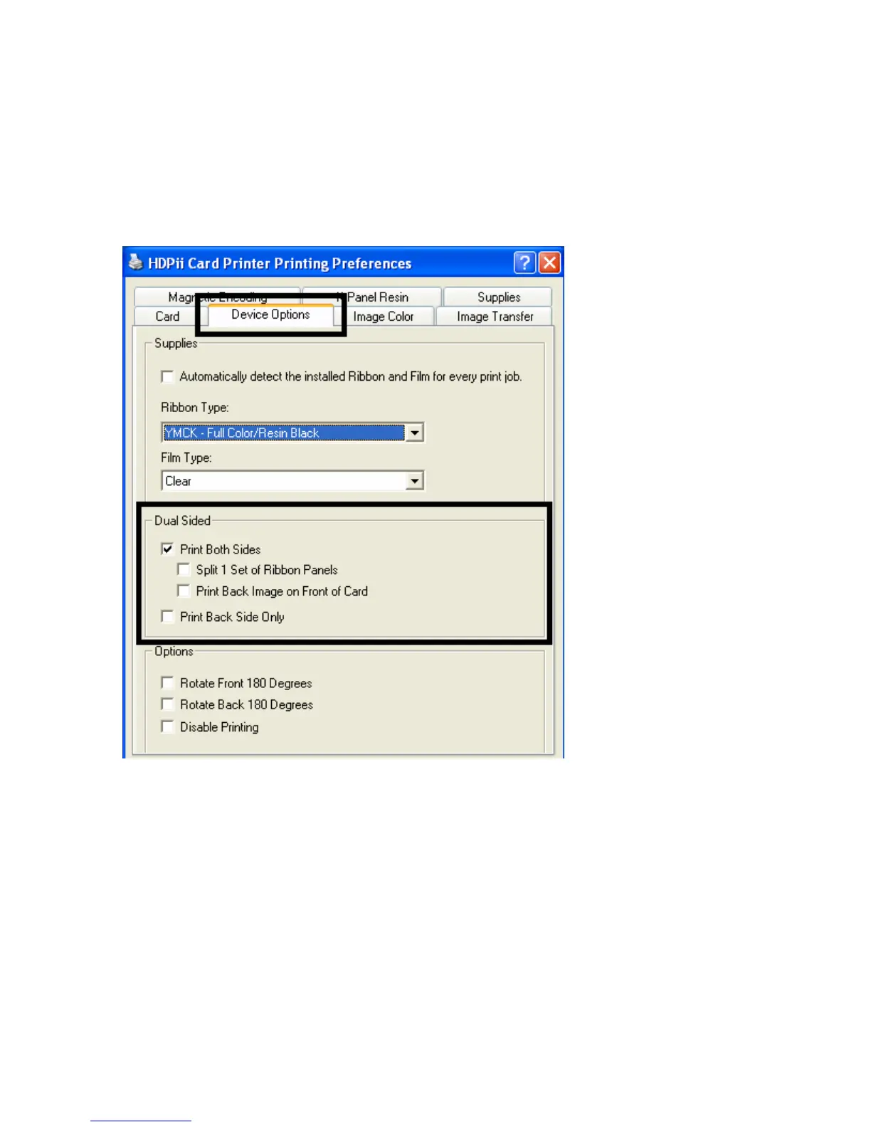 The Dual Sided group checkboxes (shown below) are grayed out if no Output is
