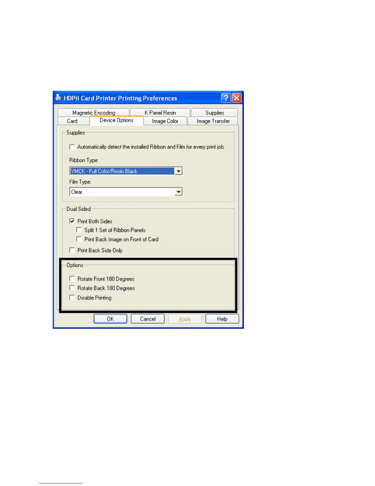 FARGO electronics HDPii - Using the Device Options Group