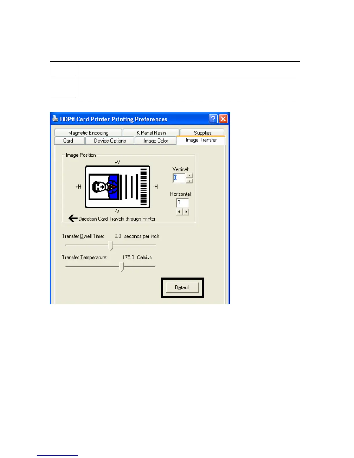 FARGO electronics HDPii - Using the Default Button