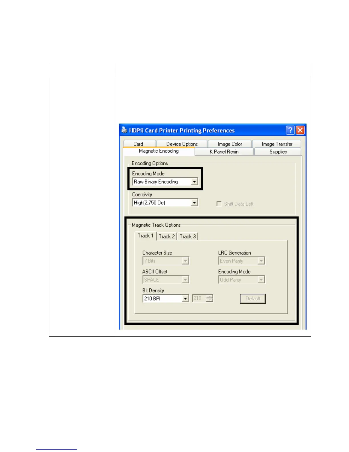 Using the Encoding Mode dropdown list (continued)