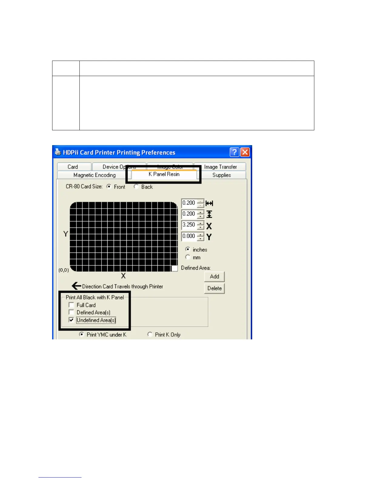 1 Select the Undefined Area(s) option to print the resin black (K) Panel for all