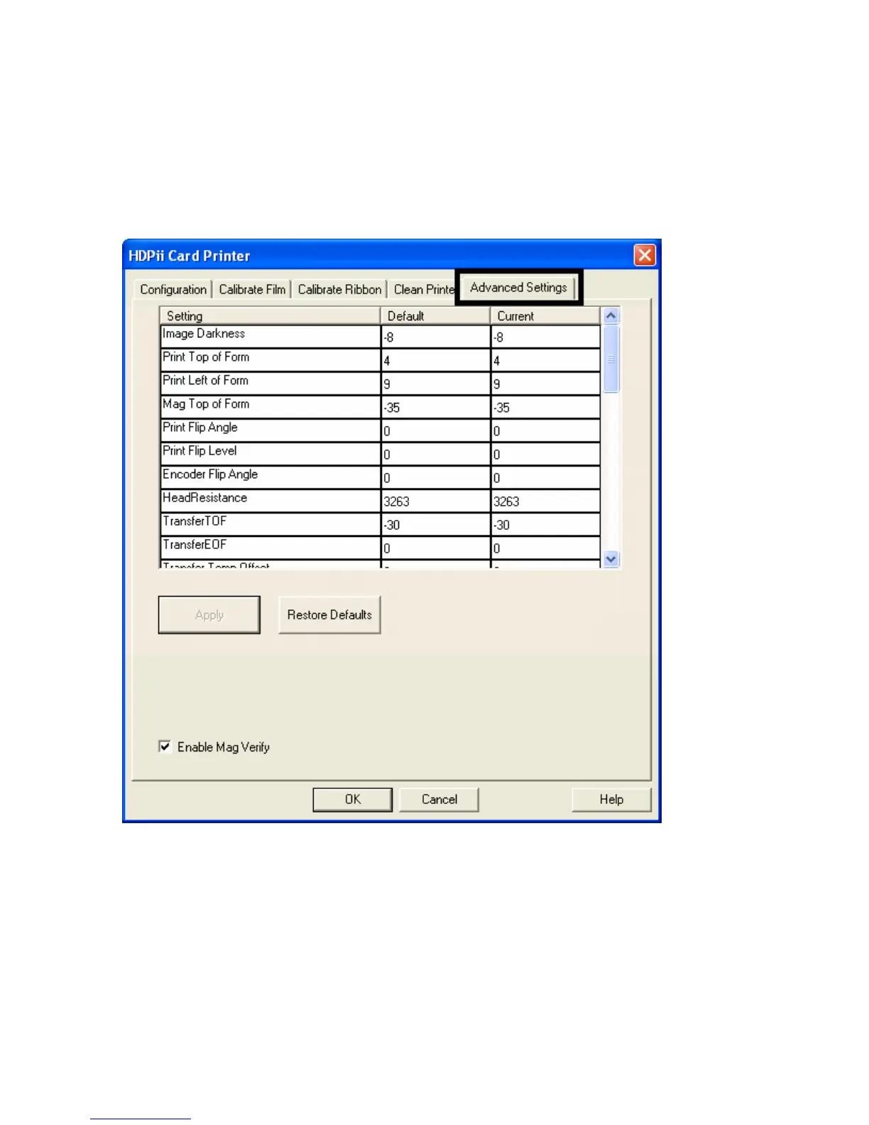 Use the Advanced Settings tab for adjusting the internal Printer settings, which are