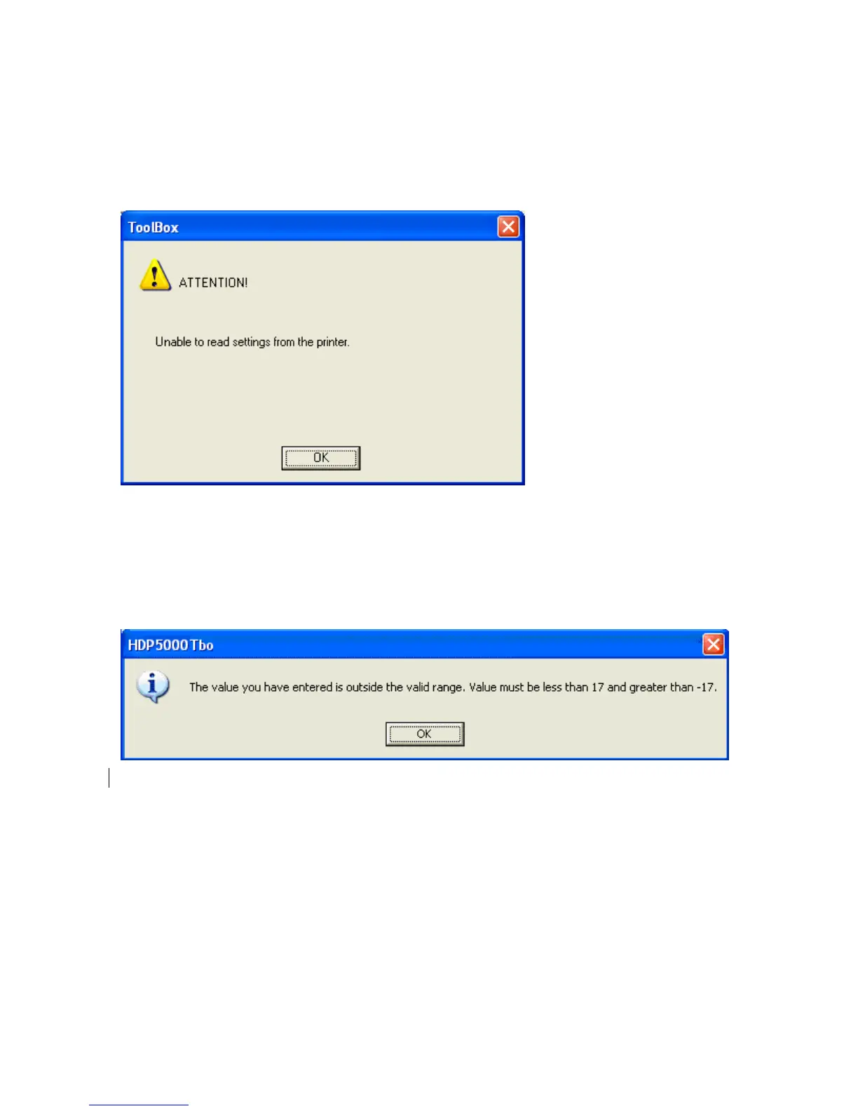 If there is no Printer connected or if the Driver is unable to communicate with the Printer, the