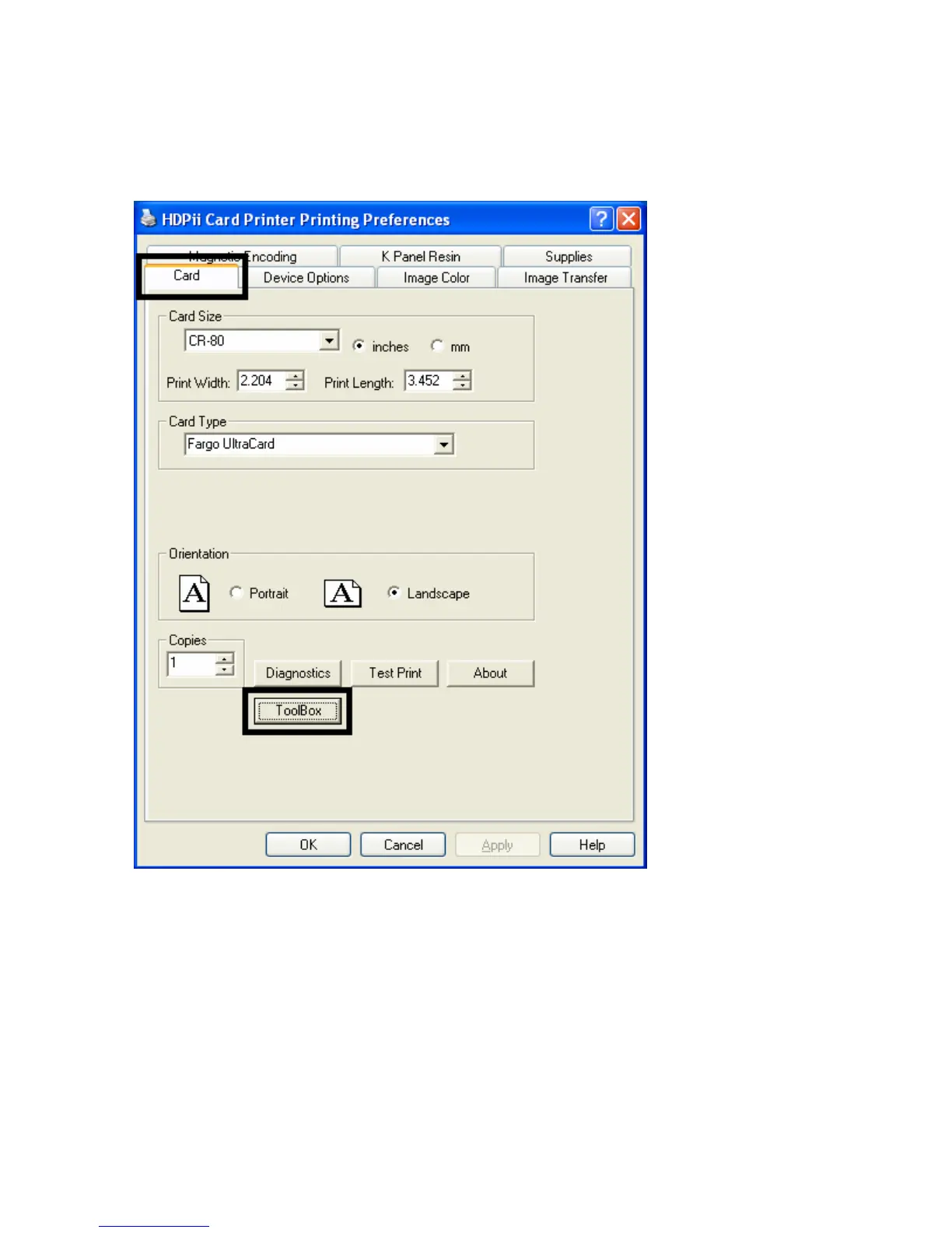 FARGO electronics HDPii - Accessing the Clean Printer Tab; See below