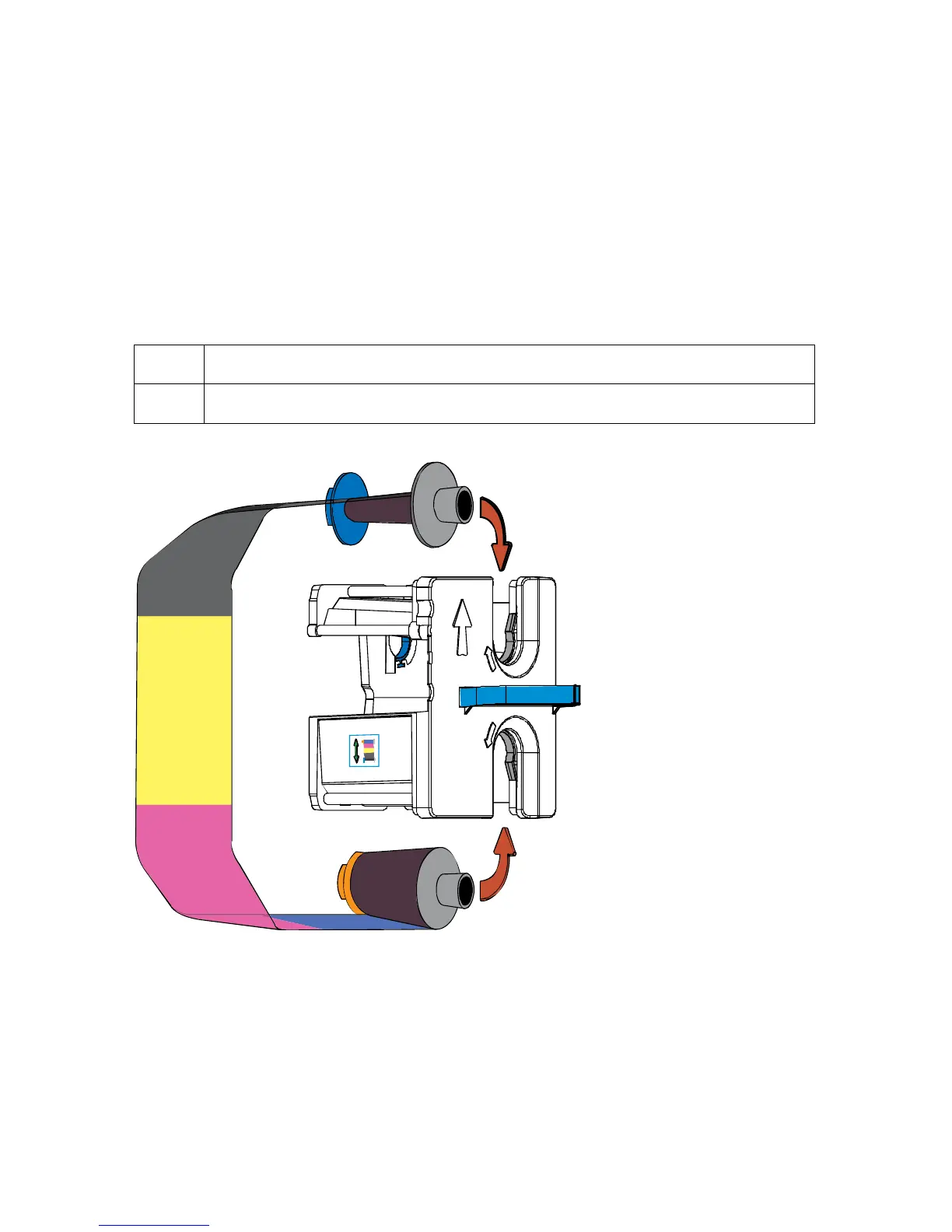 1 Load the Print Ribbon into the Print Ribbon Cartridge until the Rolls click.
