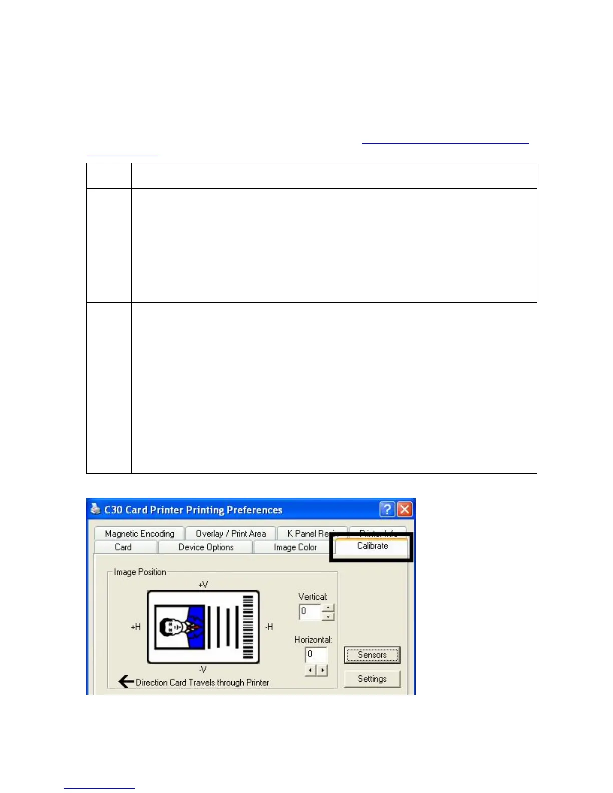 does not change the internal settings of the Printer. See Using the Printer Calibration Utility