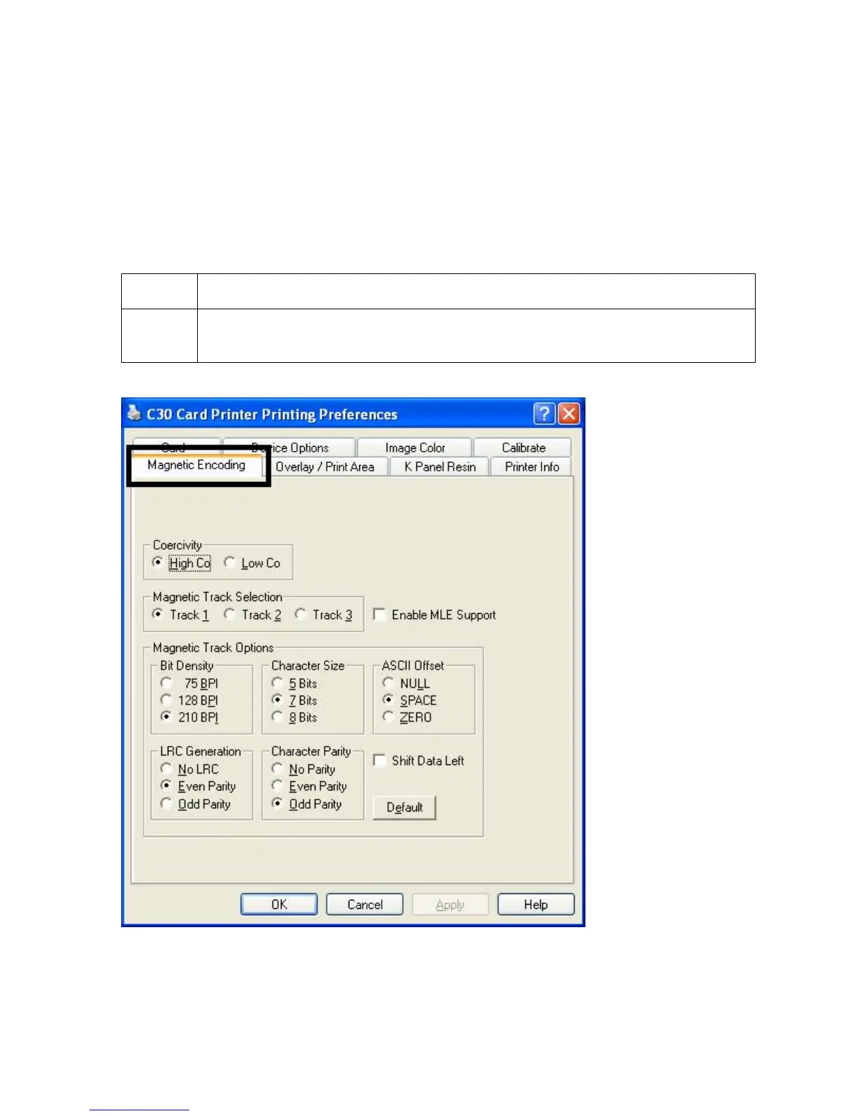Using the Magnetic Encoding tab (Persona C30)