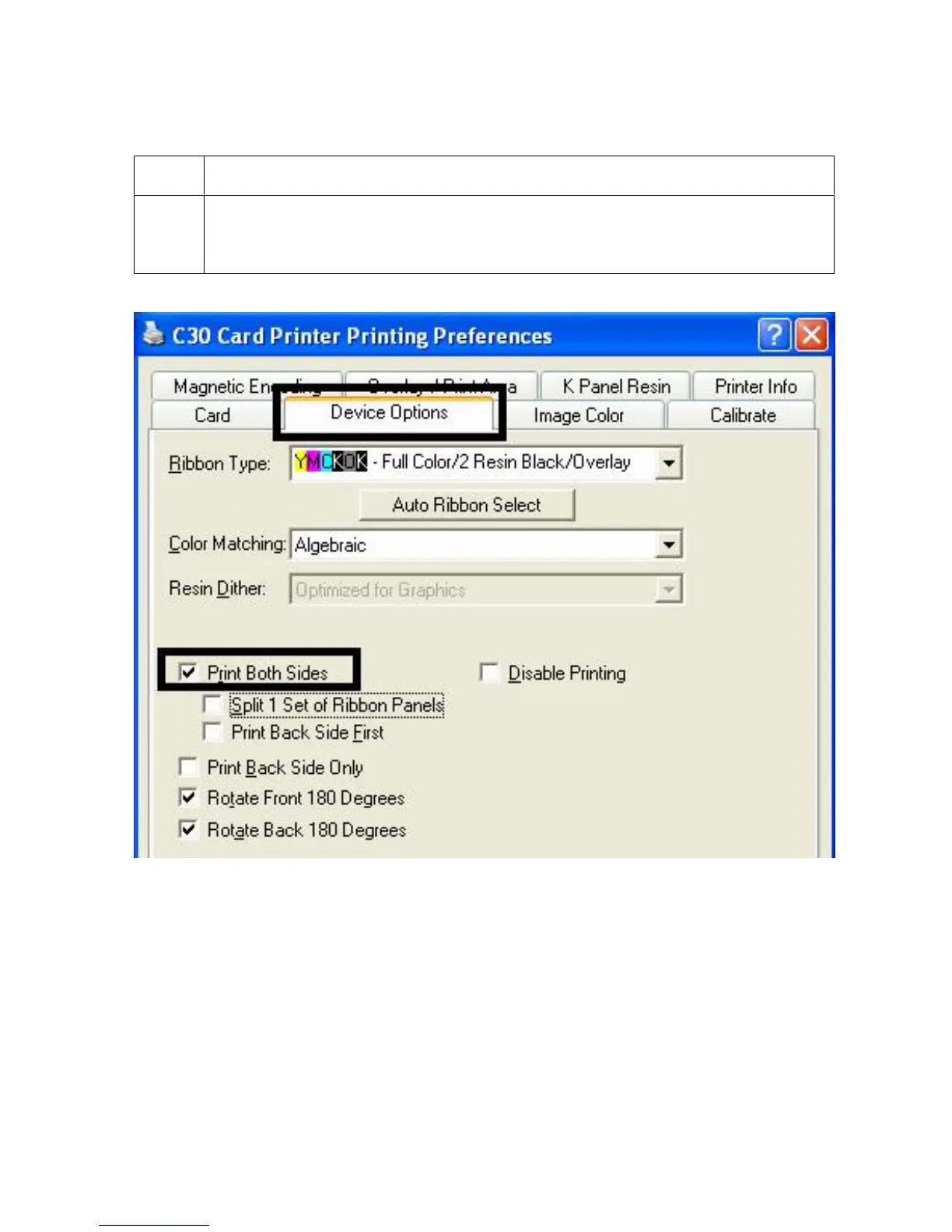 Select the Print Both Sides checkbox under the Device Options tab to enable