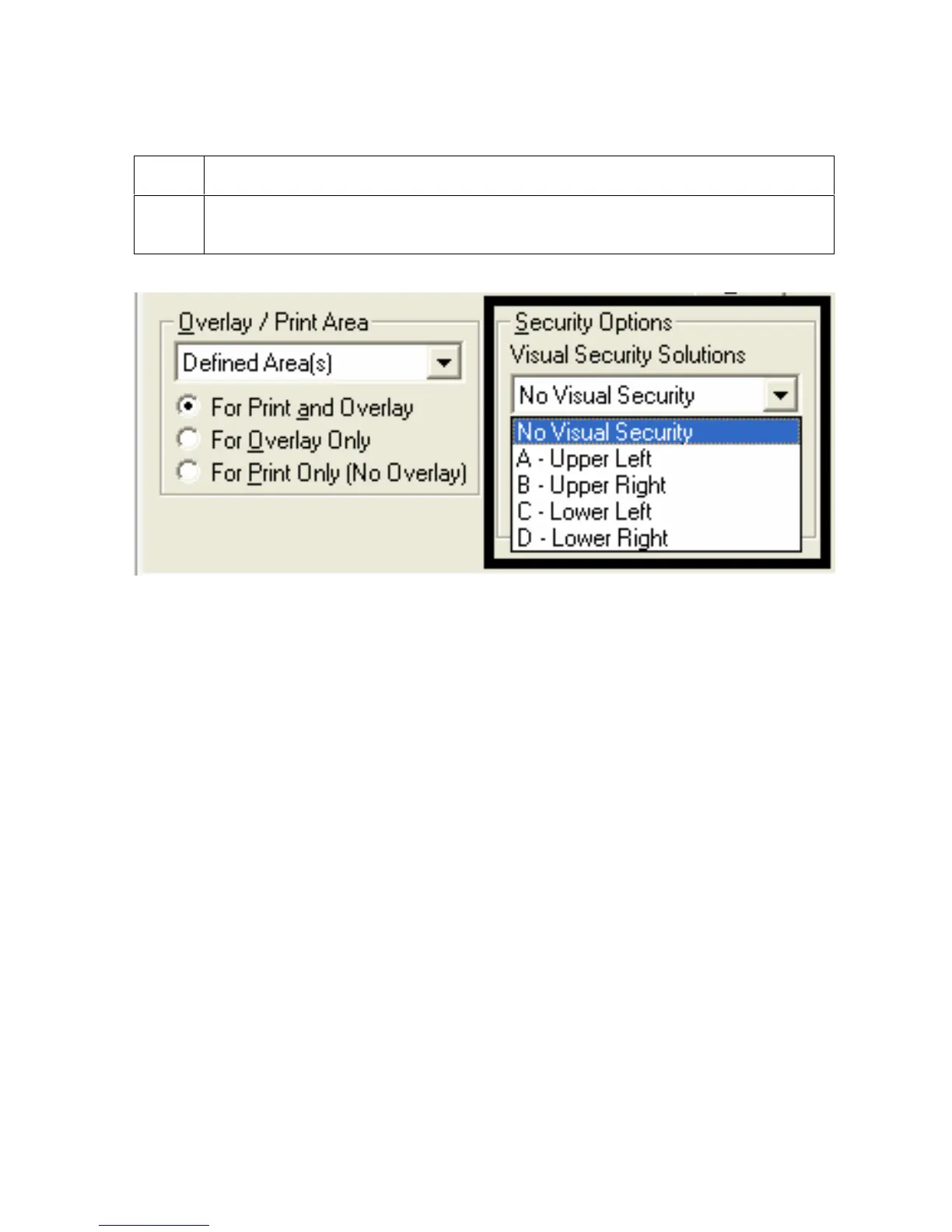 Selecting the Visual Security Solutions dropdown menu (A to D)