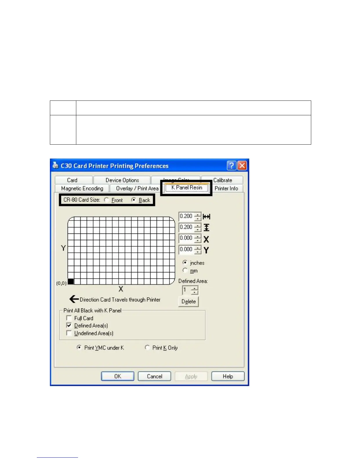 Black (K) Panel of the print Ribbon.