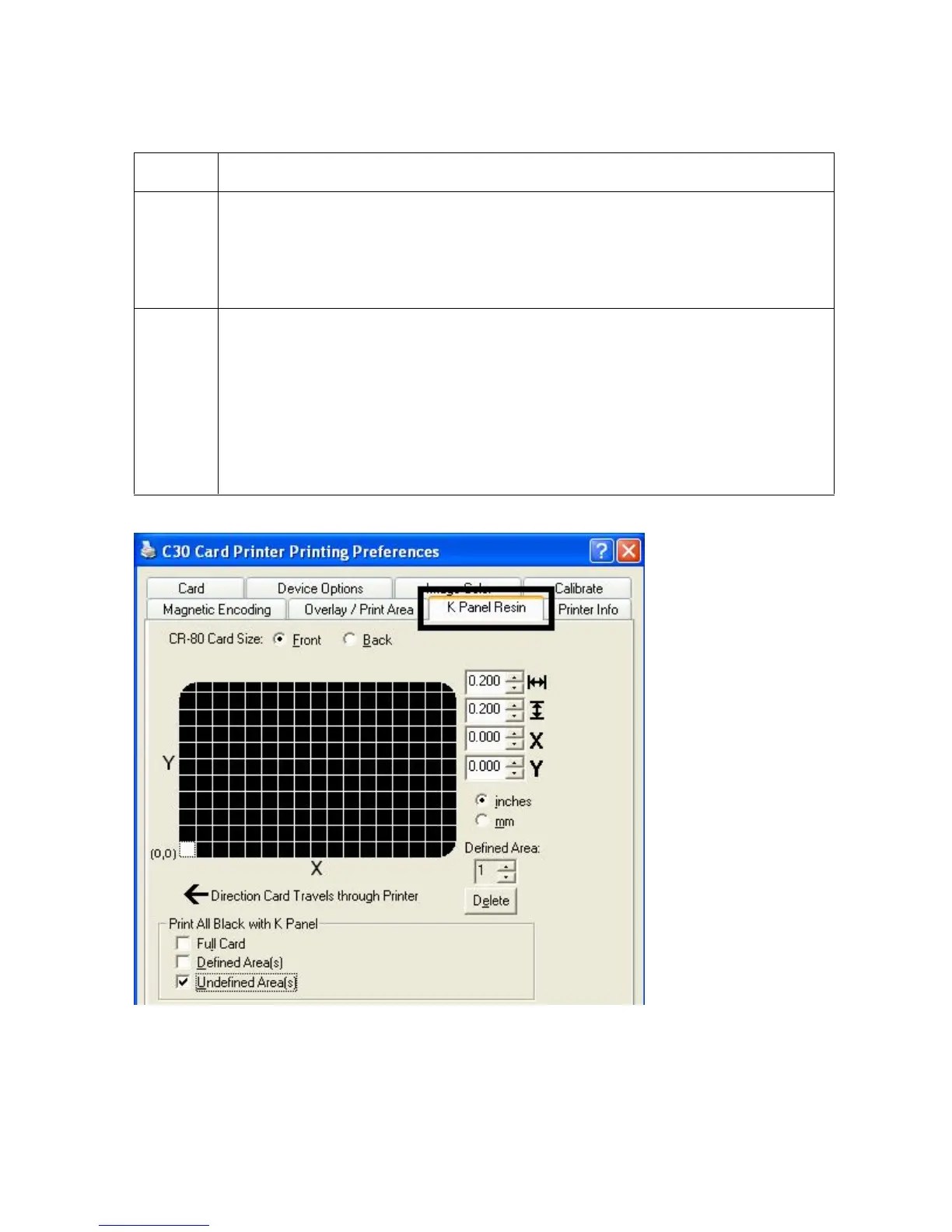 the card orientation as it exits the Printer.)