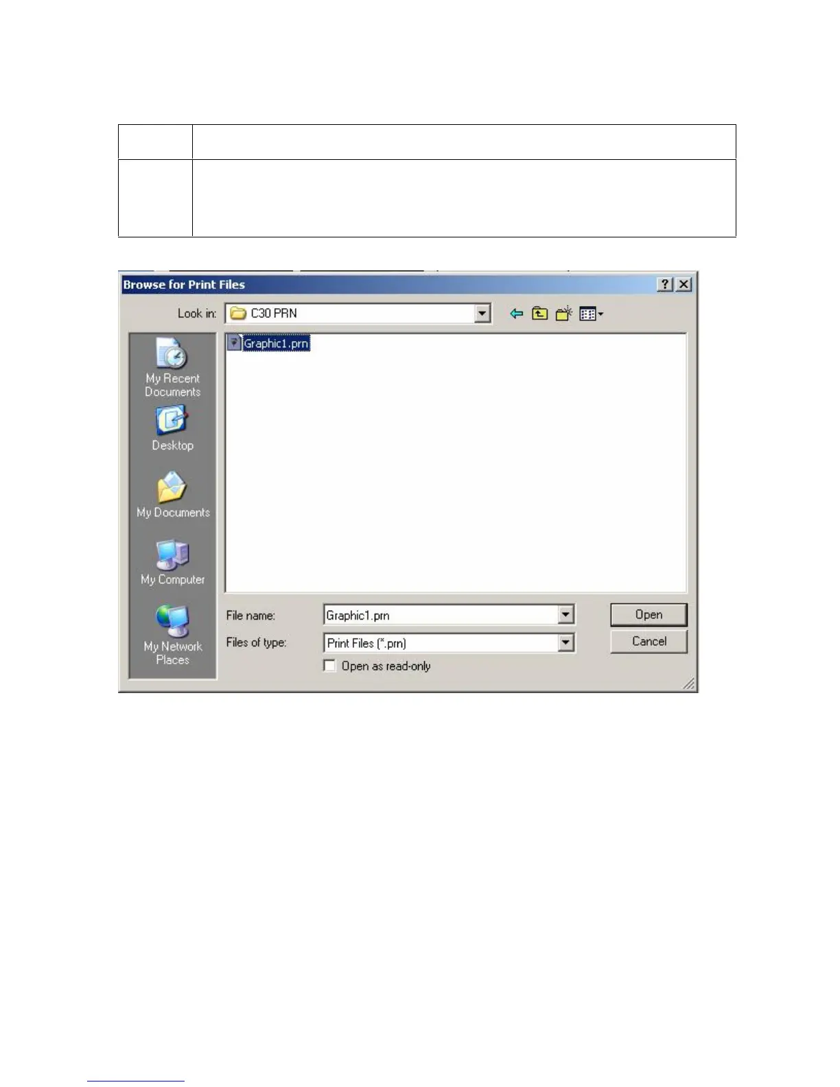 b. Select the Print File (.PRN) that is to be sent to the Printer.