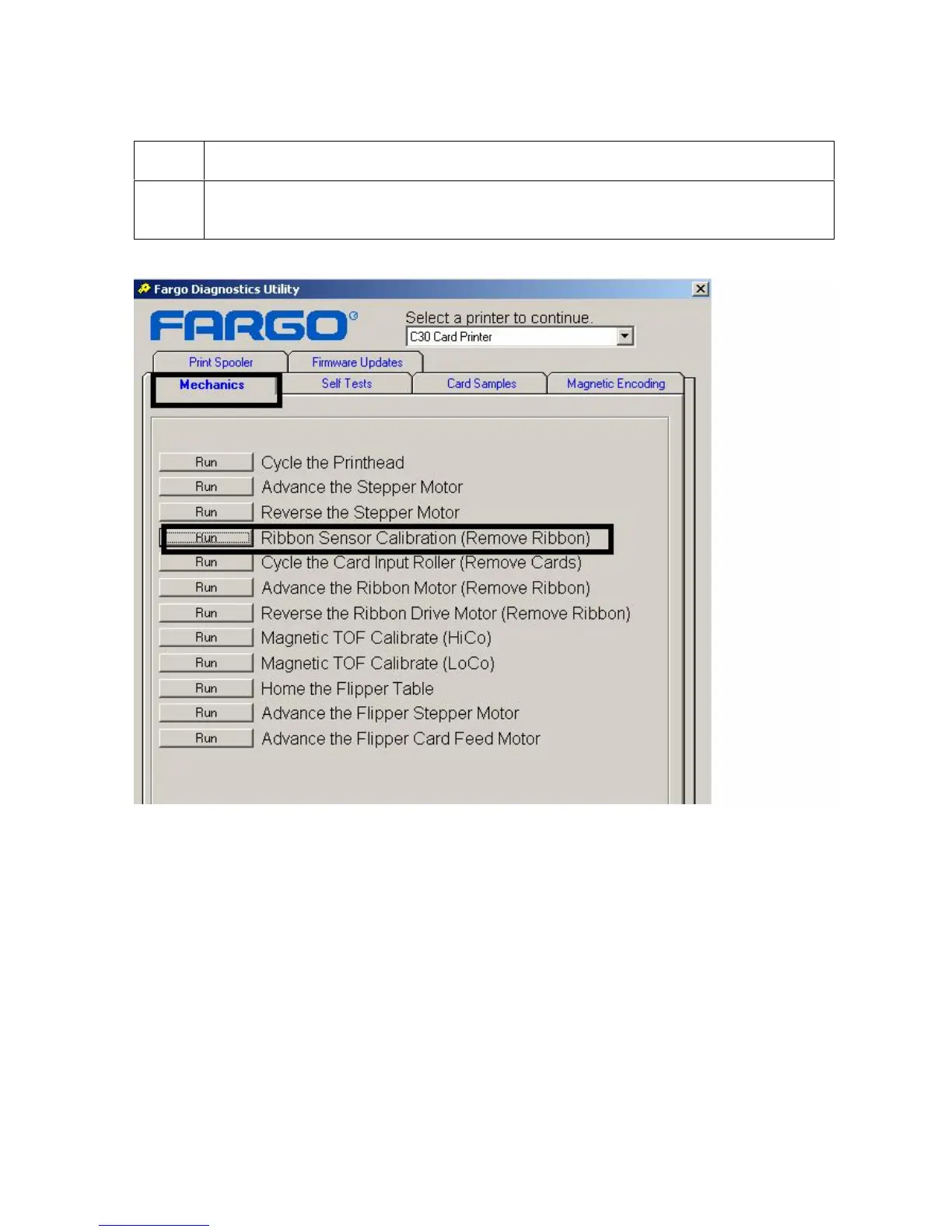 Click on the Ribbon Sensor Calibration button to calibrate the Print Ribbon.