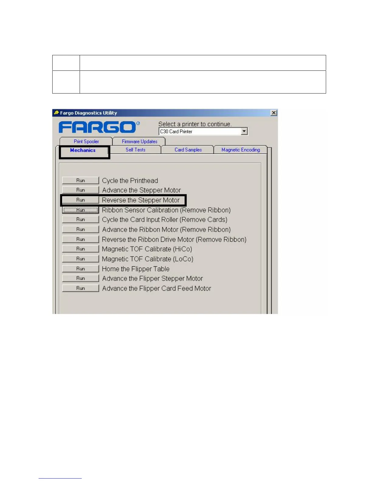 Click on the Reverse the Stepper Motor button to move the Card Rollers